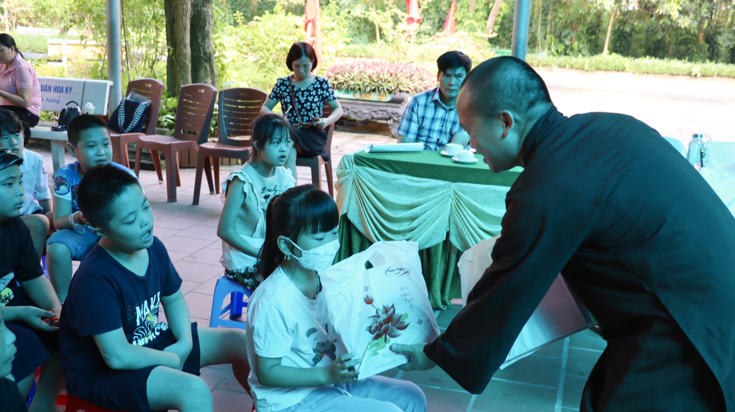 Được sự chỉ đạo của Hòa thượng Viện trưởng, sáng nay 07-9 (12-8-Nhâm Dần), Đại đức Thích Đạo Mẫn, Chánh Văn phòng Học viện đã thay mặt chư tôn đức Hội đồng Điều hành, quý Thầy Cô Văn phòng và Tăng Ni sinh Học viện trao quà Tết Trung thu cho các cháu học sinh của Trường Giáo dục trẻ khuyết tật huyện Sóc Sơn.