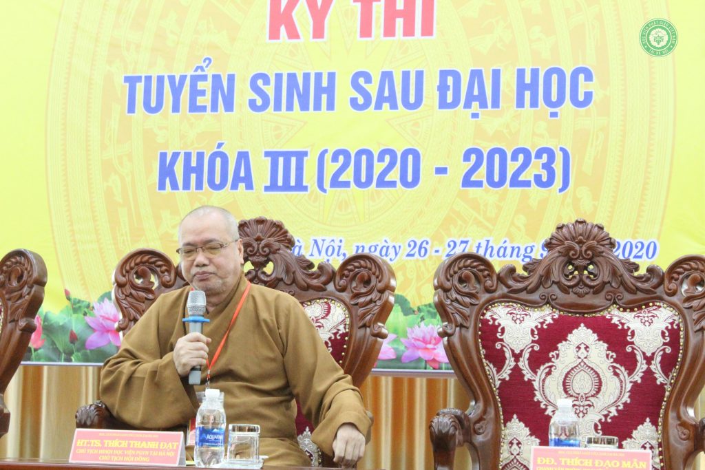 Phát biểu khai mạc và chỉ đạo kì thi, HT. Thích Thanh Đạt đã tán thán, hoan nghênh các vị tu sĩ, hành giả trên mọi vùng miền của đất nước đã đăng tham dự thi tuyển hệ Sau đại học của Học viện Phật giáo Việt Nam. Hòa thượng cũng gửi lời tán thán các thí sinh khi đã tin tưởng lựa chọn HVPGVN tại Hà Nội là nơi đồng hành trên con đường học tập, hành trì, nghiên cứu chuyên sâu về giáo lý của Phật hệ sau đại học.
