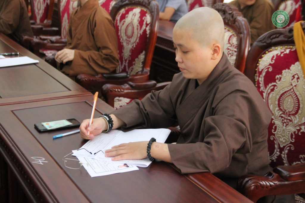 Hòa thượng cũng đề nghị các thành viên Hội đồng thi tuyển, Ban giám thị coi thi, Ban thư kí,… và toàn thể các thí sinh thực hiện nghiêm túc nội quy, quy chế phòng thi để đảm bảo sự công bằng về năng lực giữa các thí sinh. Cuối cùng Hòa thượng cũng gửi lời phú chúc đến các thí sinh dự thi hãy tự tin, với hành trang đã chuẩn bị ôn luyện chu đáo, tinh thần nỗ lực vươn lên, cố gắng làm bài thi đạt kết quả cao nhất.