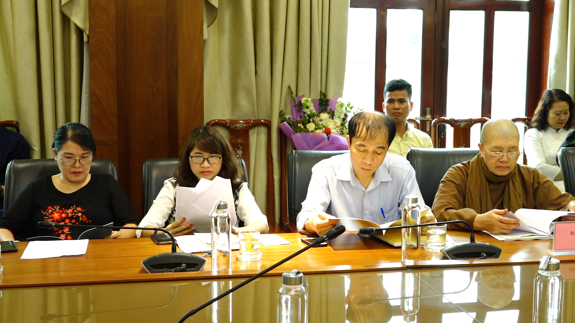Tại Hội nghị, sau lời chào đón chư Tôn đức Tăng, Ni và các đại biểu tham dự, bà ThS. Phạm Thị Minh Cúc đọc quyết định của Ban Thường vụ Trung ương MTTQVN về công việc thành lập Hội đồng nghiệm thu đề tài, ThS. Ngô Sách Thực thông qua chương trình làm việc.