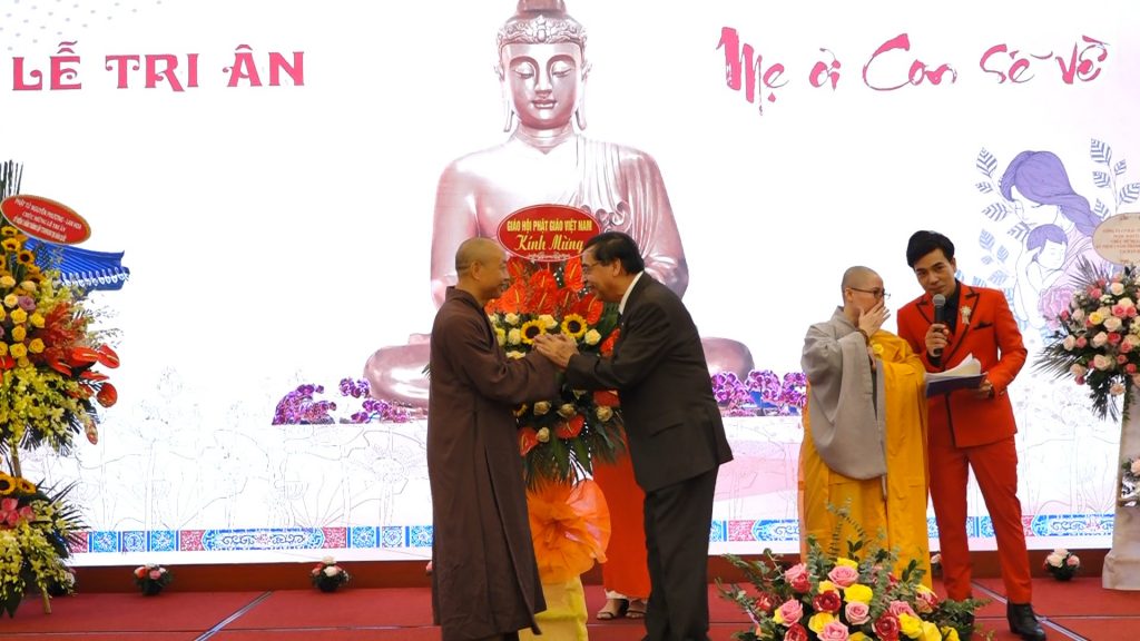 Phát biểu tại buổi lễ, ông Bùi Hữu Dược chúc mừng đến Ban tổ chức và cũng chúc sức khỏe đến những người mẹ, người chị, người em và những người con Việt Nam trên thế giới luôn hướng về tổ quốc “Hôm nay trong tháng 7 đầy ý nghĩa về tình cảm mẹ con, về đấng sinh thành, hội Phật tử Việt Nam tại Hàn Quốc đã tổ chức được buổi gặp mặt này, như là buổi gặp mặt đại diện cho nhiều Phật tử người Việt có mặt trên khắp thế giới, đây là tiếng nói của Phật tử Việt Nam tại Hàn Quốc nhưng cũng là tiếng nói của Phật tử Việt Nam trên khắp thế giới, để muốn nói rằng trong mùa khó khăn vì dịch Covid, lẽ ra tháng 7, những người con đã về được bên mẹ, những người mẹ, những đấng sinh thành đã được gặp con, nhưng vì không được gặp do khó khăn của dịch bệnh đã tổ chức để nói tiếng nói chung, chúng con sẽ về, về với chân tâm bản tính con người, về với cội nguồn quê hương và về với nơi chôn nhao cắt rốn của mình”. Đại diện ban tổ chức, SC. Thích Nữ Giới Tánh cũng đã trao quà kỷ niệm cùng bó hoa tươi thắm đến ông.