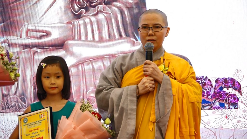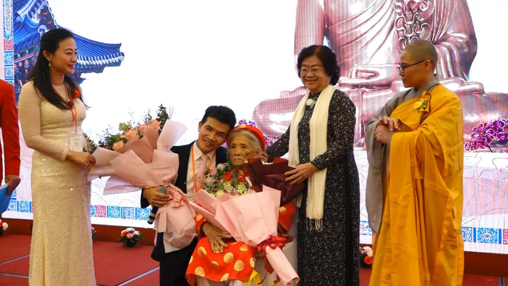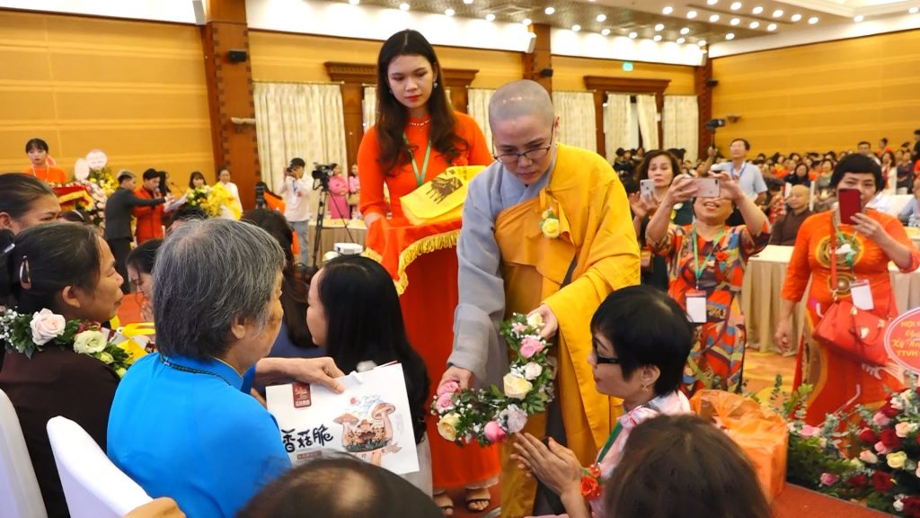 Nhân dịp này, bà Trương Mỹ Hoa cũng có đôi lời chúc mừng đến bà con kiều bào xa nhà. Bà chia sẻ: “tôi rất cảm kích bởi vì những Phật tử Việt Nam tại Hàn Quốc của chúng ta, mặc dù ở rất xa Tổ quốc, điều kiện hoàn cảnh không giống nhau, nhưng tấm lòng của mình luôn hướng về quê hương, hướng về những vấn đề mang tính thời sự rất có ý nghĩa. Hôm nay được dự buổi lễ này tôi rất mừng, mặc dù tình hình dịch bệnh diễn ra, không tổ chức được ở Hàn Quốc nhưng SC. Giới Tánh đã tổ chức được ở Việt Nam chúng ta, đó cũng là truyền thống tri ân báo hiếu của dân tộc Việt Nam, nhân buổi lễ này tôi cũng xin gửi lời thăm hỏi những bà con Việt Nam của chúng ta đang sống xa tổ quốc nhưng vẫn hướng lòng mình về tổ quốc, về ông bà”.