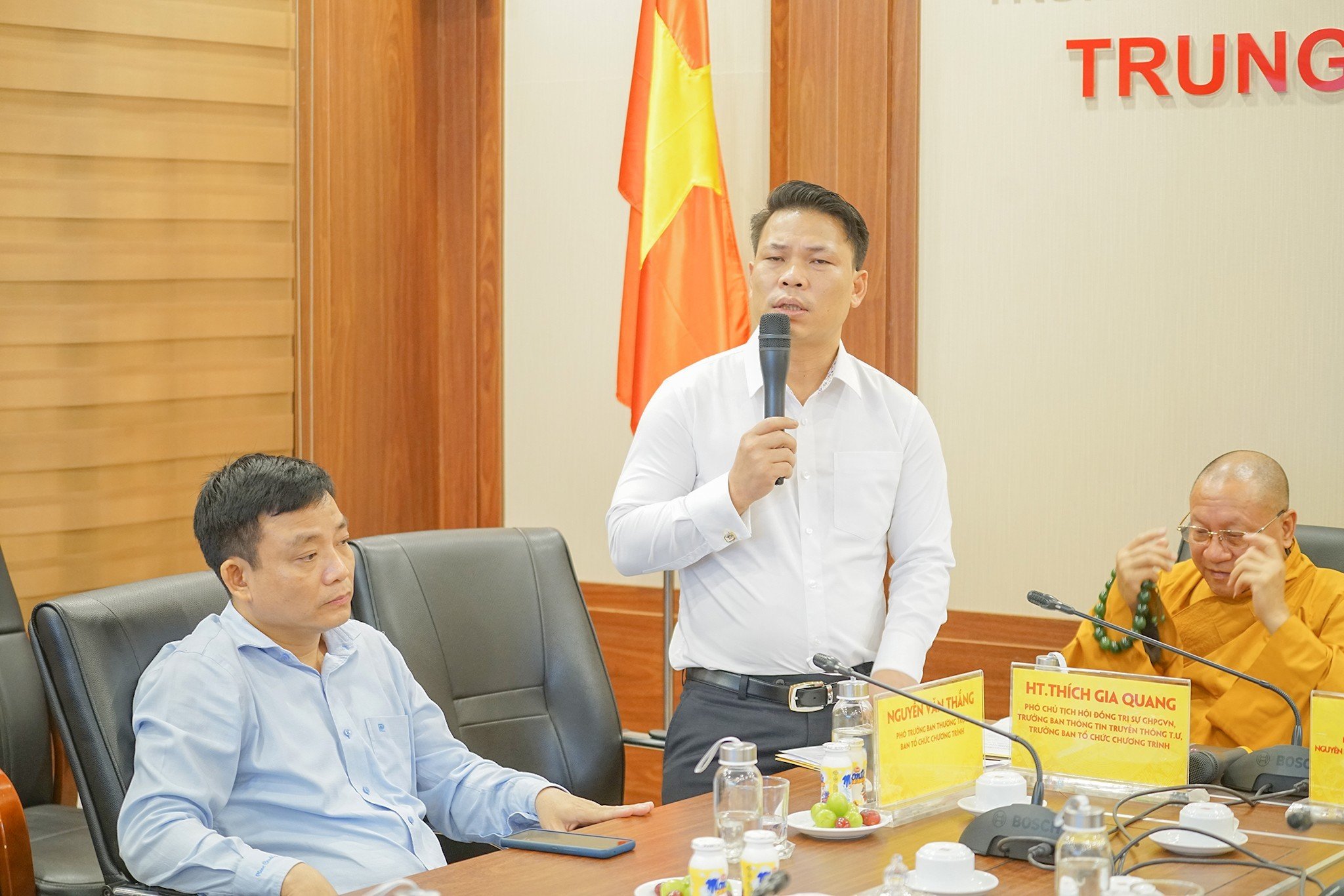 Phiên họp báo dưới sự chủ trì của HT. Thích Gia Quang - Phó chủ tịch HĐTS, Trưởng ban TTTT TƯ GHPGVN, Trưởng Ban Tổ chức; TT. Thích Thanh Huân - Ủy viên Thư ký HĐTS, Phó chánh Văn phòng I, Phó trưởng ban Thường trực Ban TTTT TƯ GHPGVN, Phó trưởng ban Thường trực Ban Tổ chức; TS. Lê Doãn Hợp - Nguyên Ủy viên TƯ Đảng, Nguyên Bộ trưởng bộ Thông tin và Truyền thông, Cố vấn chương trình; ông Nguyễn Văn Thắng - Phó trưởng ban Thường trực ban tổ chức và sự tham dự của đại diện các trang báo đài cùng tham dự.