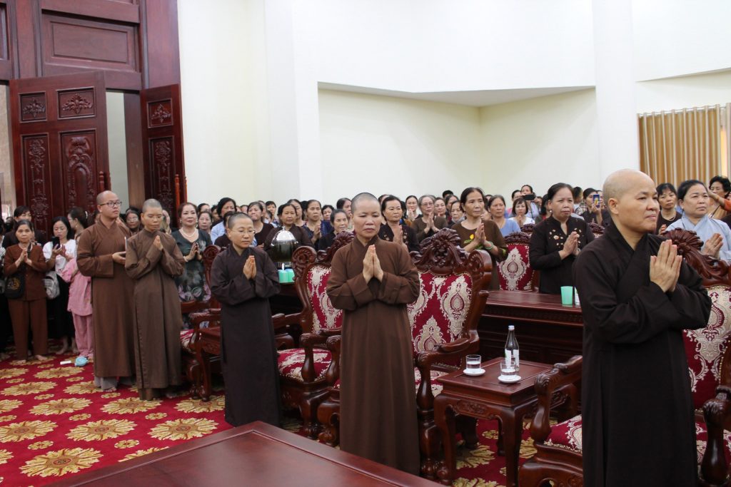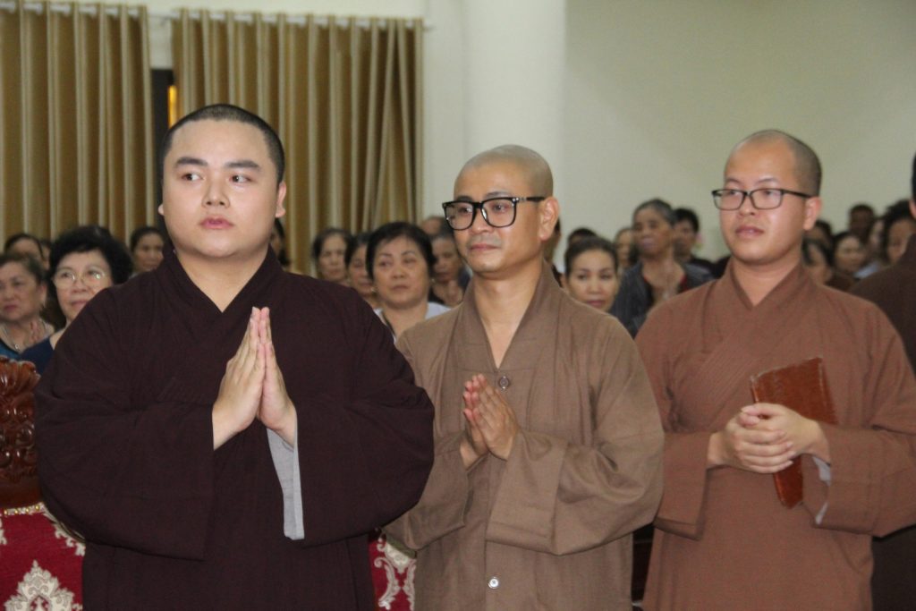 Đại diện chư Tăng Ni cùng đoàn Phật tử, ĐĐ. Thích Bản Chân đã dâng lời tác bạch lên chư Tôn đức Chứng minh, hôm nay túc phúc nhân duyên được sự thương tưởng của Hòa thượng Trưởng Ban Trị sự PG TP.Hải Phòng HT. Đạo hiệu Thích Quảng Tùng cho phép Tăng Ni cùng Phật tử về bái chư Phật, lễ chư vị Tổ sư, sam Tăng tại hạ trường Học viện dâng cúng phẩm vật, tịnh tài ngoại hộ chư Tăng Ni đang theo học, hành trì tại đây nhằm gieo duyên lành với Tam Bảo.