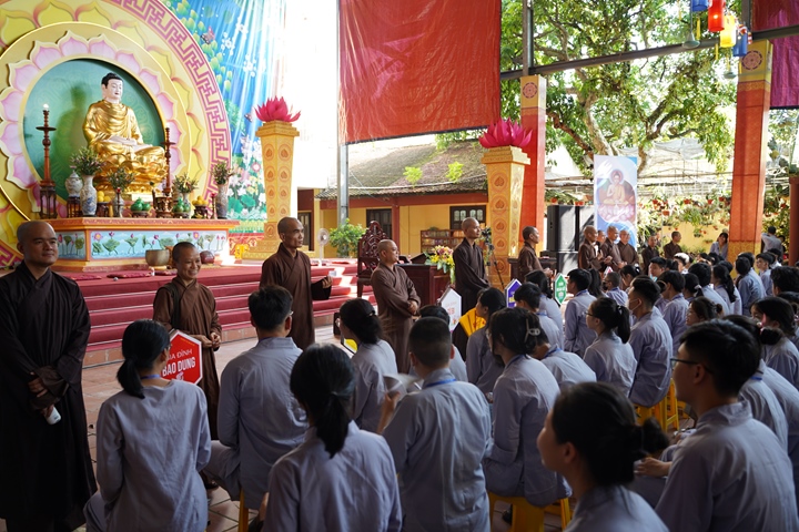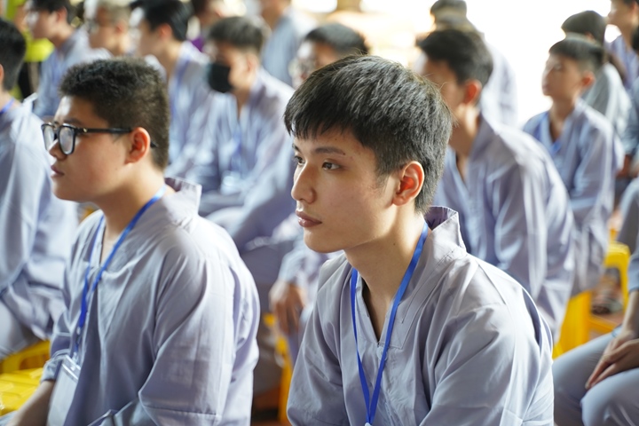 Sau khi đại diện các bạn khóa sinh đối trước chư Tôn đức chứng minh, phát nguyện tu học tinh tiến trong 6 ngày 5 đêm, tuân thủ chấp hành nội quy khóa tu; Hòa thượng Thích Bảo Nghiêm đã có đôi lời đạo từ khuyến tấn các bạn trẻ cố gắng nỗ lực tu học, gạt bỏ tạm thời những âu lo muộn phiền của cuộc đời để tập sống chậm, thư thái, thảnh thơi và vững chãi bên quý Thầy và các bạn đồng tu.