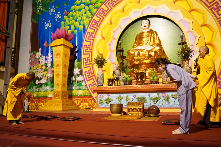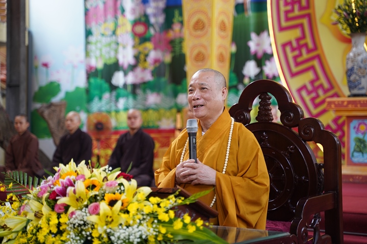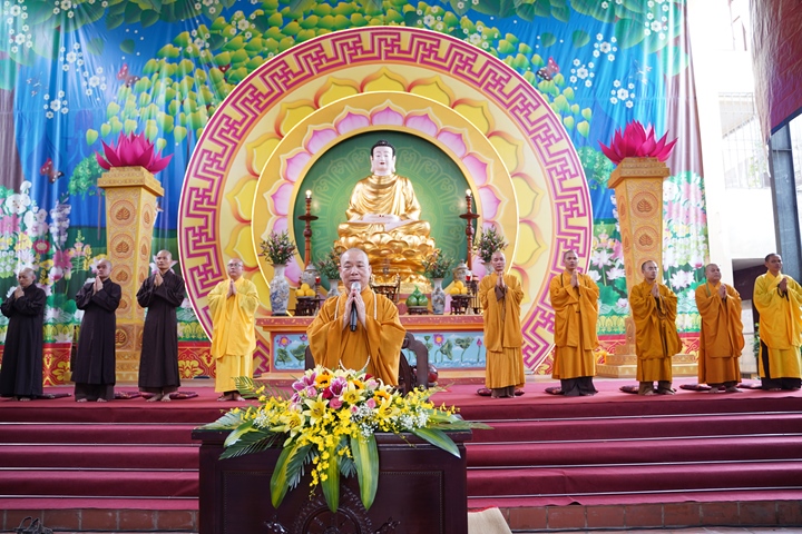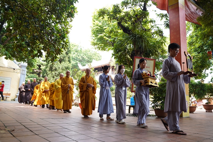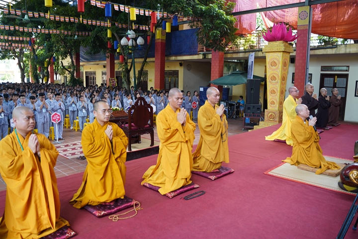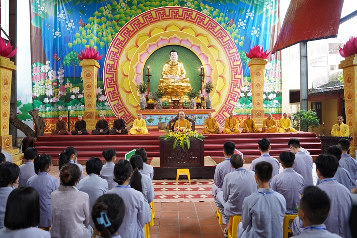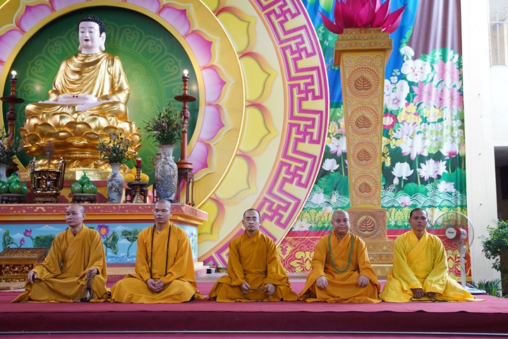 Buổi lễ đặt dưới sự chứng minh của Hòa thượng trụ trì Thích Bảo Nghiêm – Phó chủ tịch HĐTS, Trưởng Ban Hoằng pháp TW, cùng chư Tôn đức Tăng chùa Bằng, chùa Hoằng Pháp (thành phố Hồ Chí Minh), chư Ni chùa Đình Quán (Hà Nội).