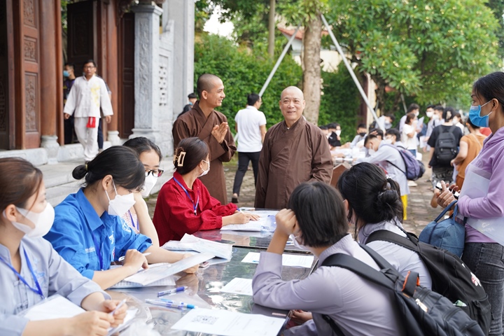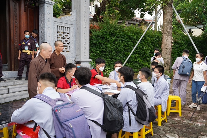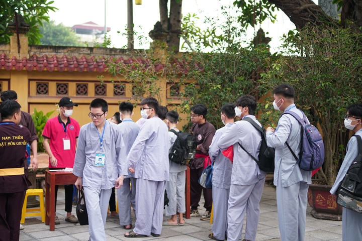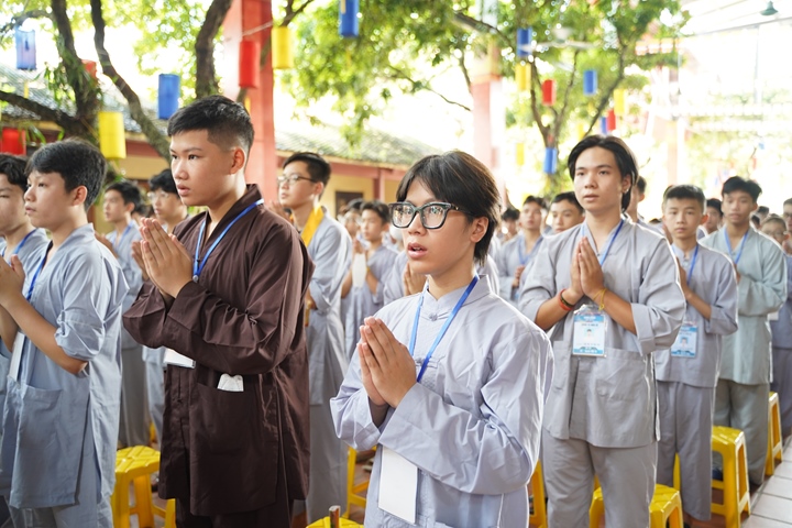Sáng nay ngày 23/7 (tức ngày 25/6/Nhâm Dần), ngay từ sáng sớm, các bậc phụ huynh đã đưa con em trở về chùa để làm thủ tục nhập chúng. Hơn 500 bạn khóa sinh đã được quý Thầy hướng dẫn lễ Phật, sau đó điểm danh, nhận phòng và bắt đầu “chuyến du lịch tâm linh” trong 6 ngày 5 đêm, bên những người bạn đồng trang lứa.