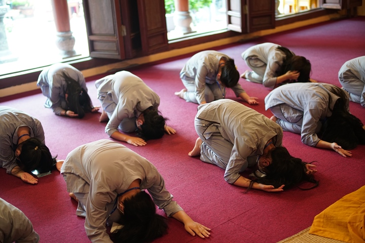 Sau đó các khóa sinh còn được hướng dẫn những oai nghi trong đi – đứng – nằm – ngồi, cũng như các phép tắc cơ bản của người Phật tử trong chốn thiền gia từ việc xưng hô cho tới việc lễ lạy sao cho đúng.