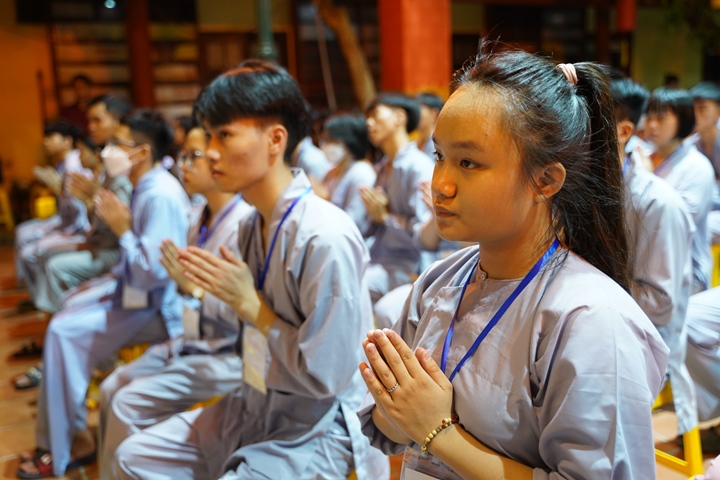 Ngày tu học đầu tiên của các khóa sinh đã khép lại với những bỡ ngỡ pha lẫn cảm xúc thú vị của ngày đầu “du lịch tâm linh” bên những người lạ sắp thành quen.