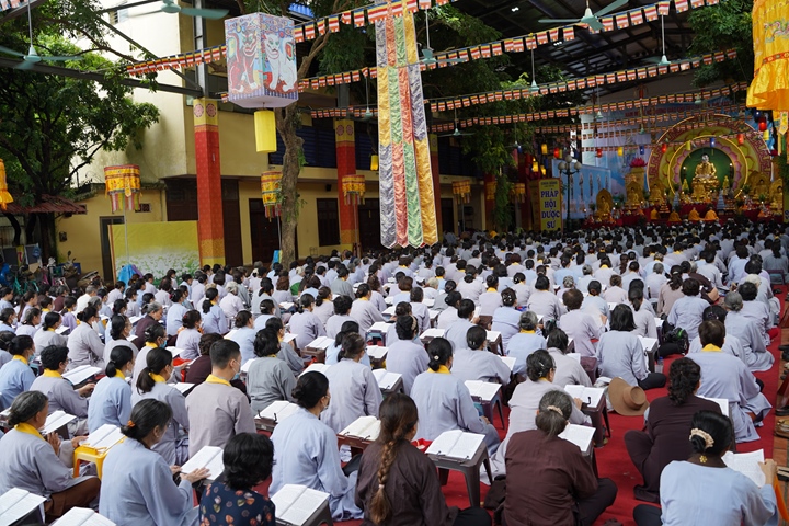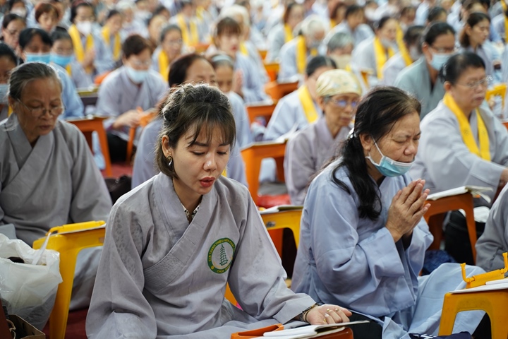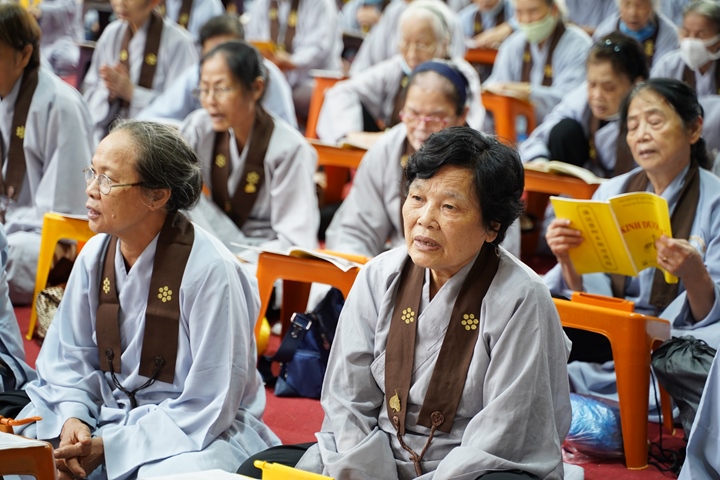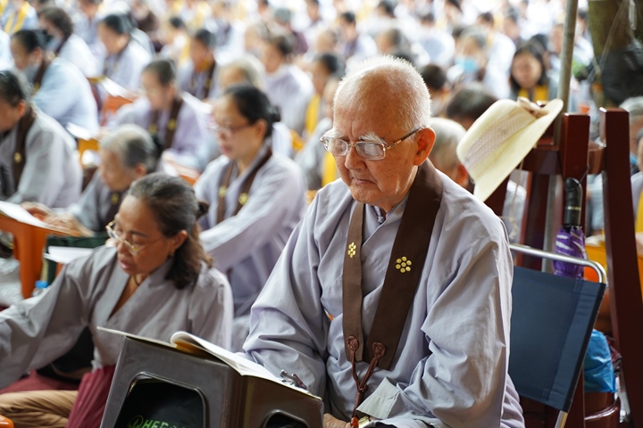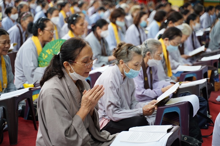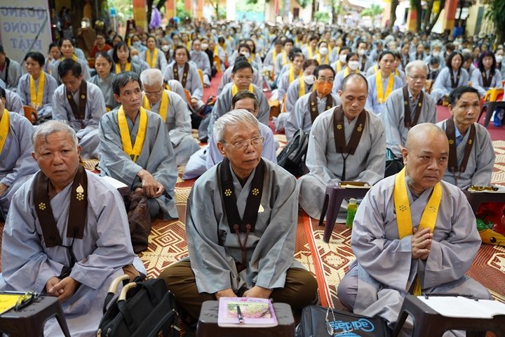 Qua đây, Hòa thượng sách tấn hàng Phật tử trong Pháp hội hãy chuyên chú nhất tâm để tu tập, hưởng trọn vẹn năng lượng của mười phương chư Phật, áp dụng lời Phật dạy để xây dựng cuộc sống an bình, hạnh phúc, tràn đầy tình yêu thương từ ái.