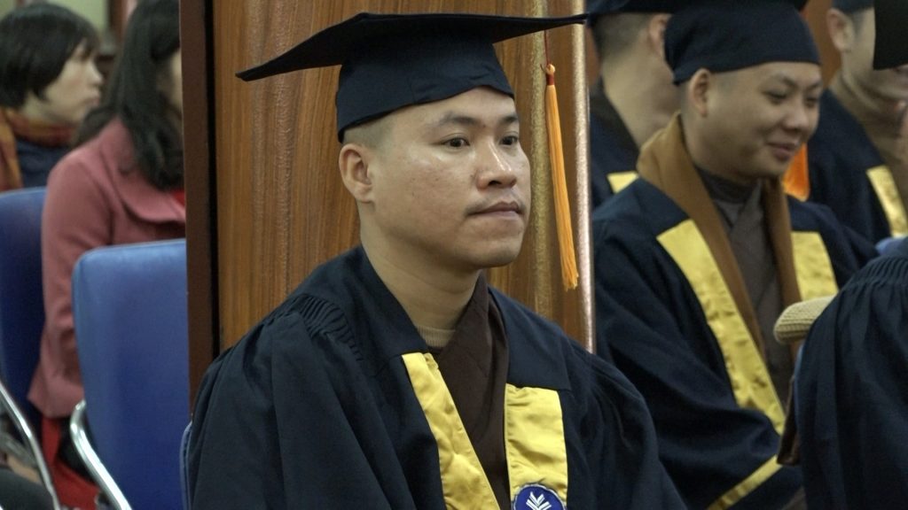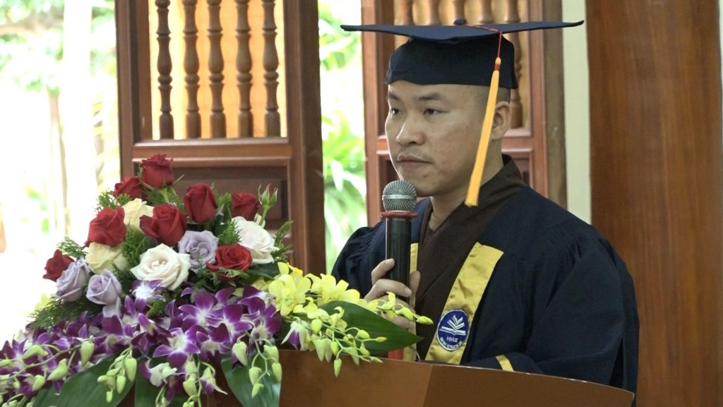 PGS. TS. Hà Văn MinhSau đó, GS. TS. Đỗ Việt Hùng cũng đã phát biểu nhắn nhủ đến 46 Tăng Ni sinh đã tốt nghiệp. Ông nhấn mạnh “Ban giảng huấn đem hết khả năng, nhiệt huyết truyền trao, không chỉ kiến thức mà còn cả cách sống phạm hạnh, trong tinh thần với đạo pháp và dân tộc cho Tăng Ni sinh. Đối với Tăng Ni sinh phải thật quyết tâm, bằng nghị lực tiếp thu kiến thức đã được truyền trao và tự tôi luyện chính mình”.