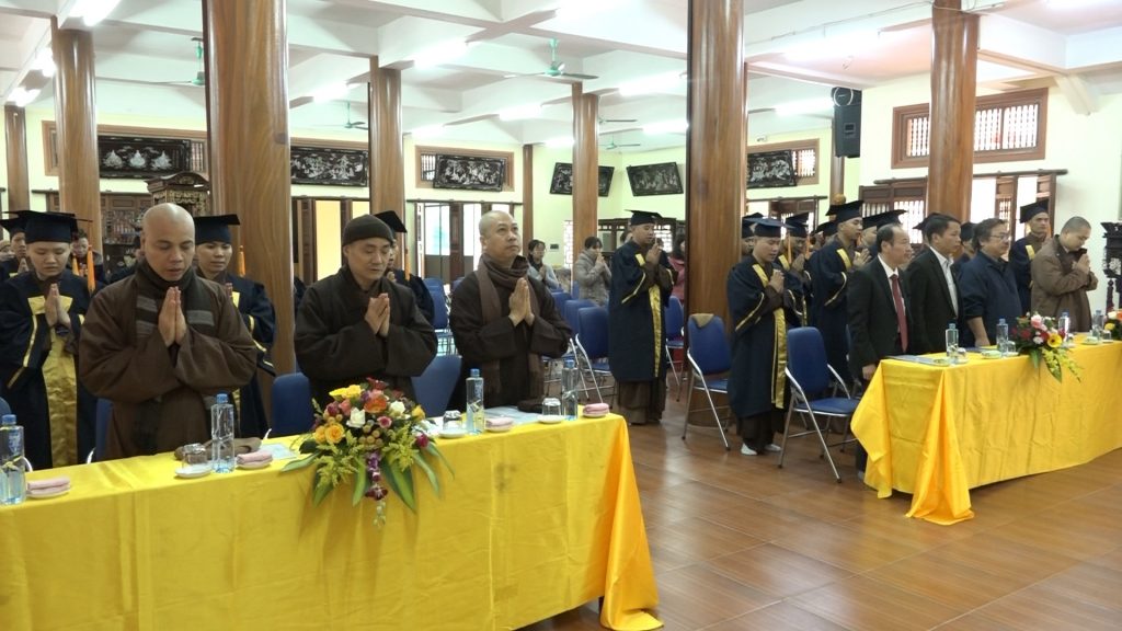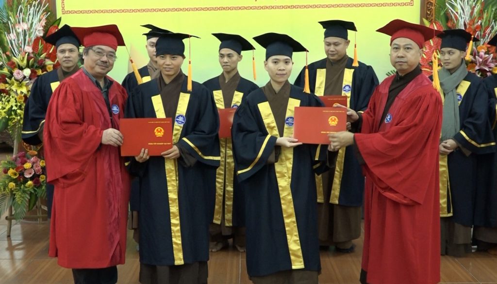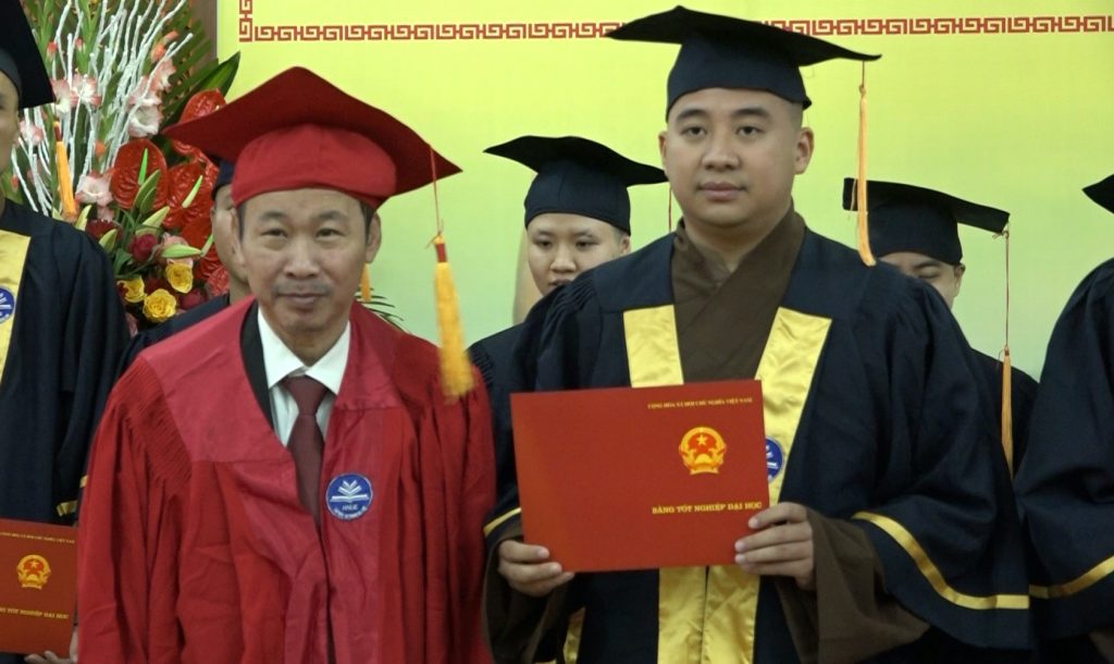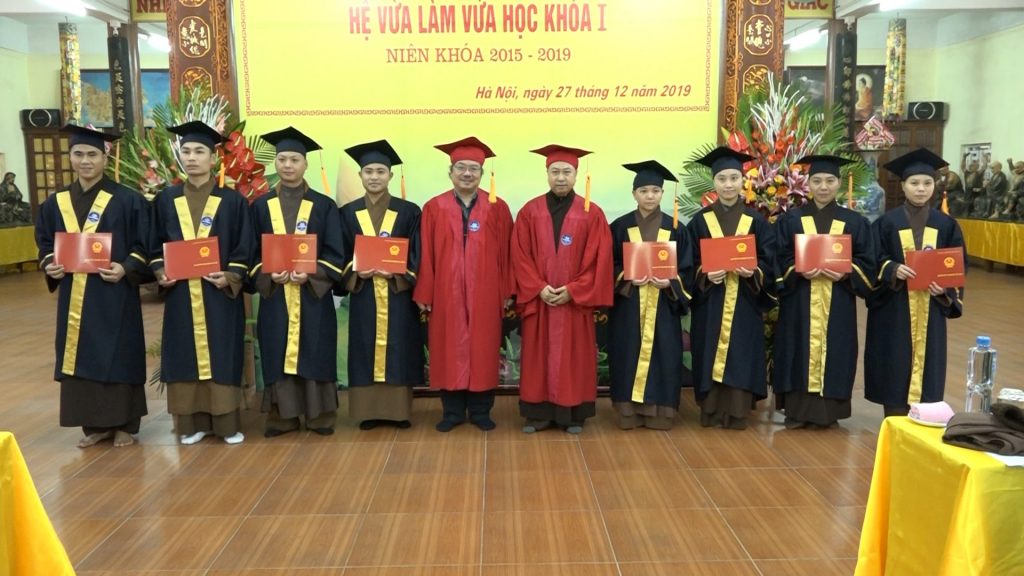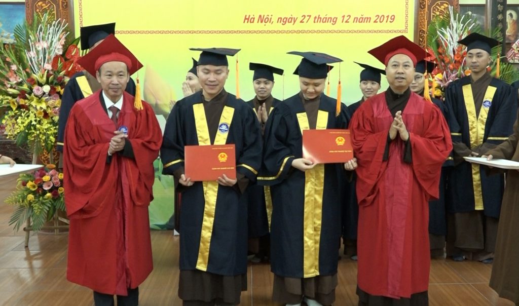PSO-Sáng ngày 27/12/2019, Trường trung cấp Phật học Hà Nội đã kết hợp cùng Trường Đại học Sư phạm Hà Nội tổ chức Lễ bế giảng và trao bằng tốt nghiệp ngành Đại học ngữ văn hệ vừa làm vừa học khóa I niên khóa 2015 -2019 cho 46 Tăng Ni sinh tại Trường Trung cấp Phật học Hà Nội - Chùa Đại Từ Ân - thị trấn Phùng - huyện Đan Phượng.