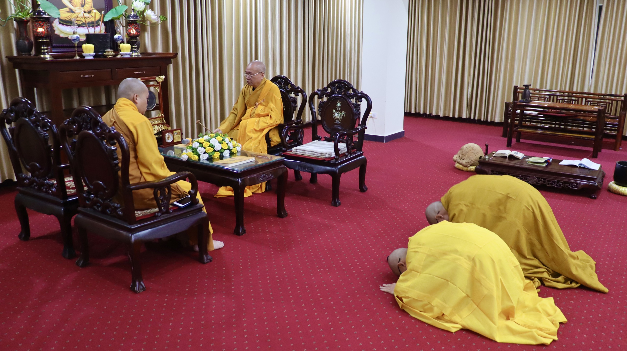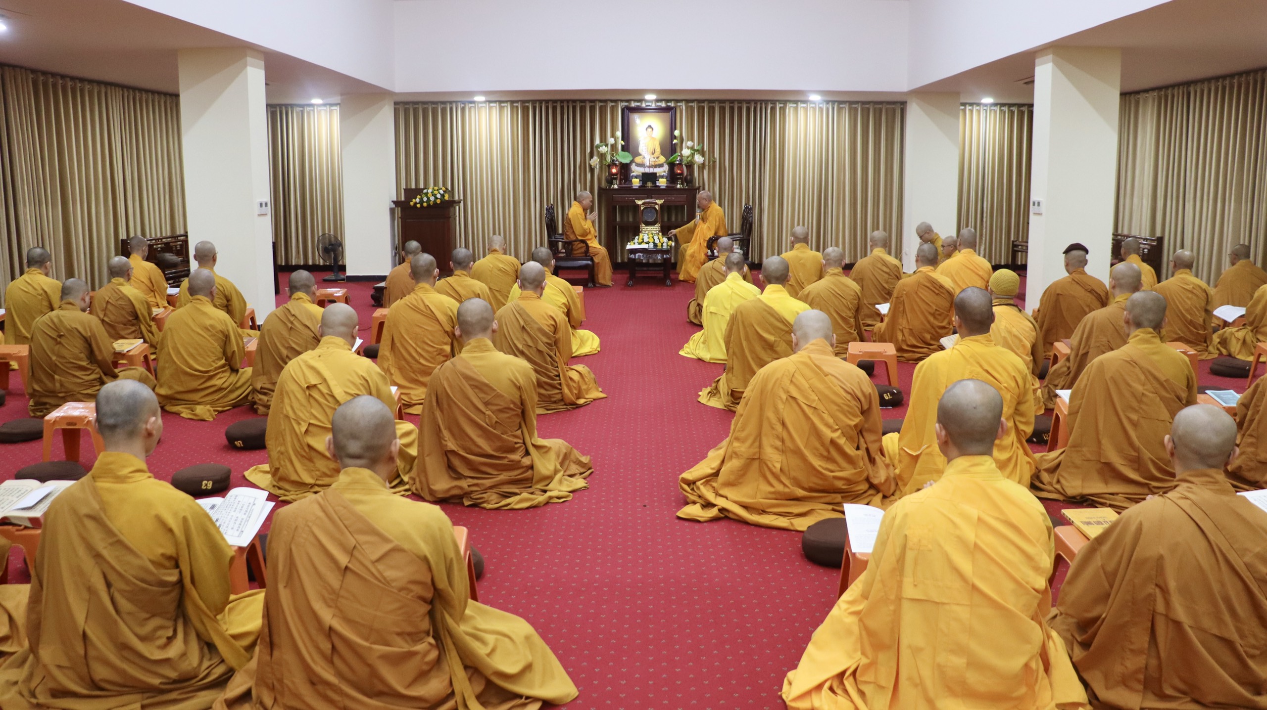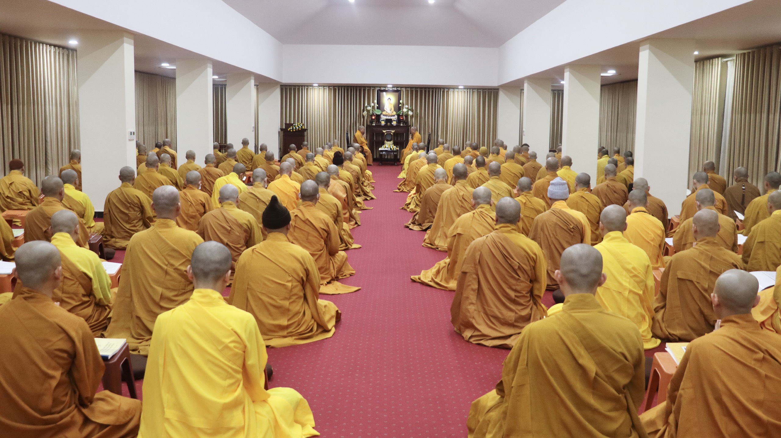 Chư Tăng tuần tự theo hạ lạp trang nghiêm tự lập tại Thiền đường Tòa Viên Quang. Đại chúng đã thành kính niêm hương bạch Phật, đỉnh lễ Tam bảo và phát lồ sám hối. Chư Tăng đã đồng thanh tụng lại các giới luật được đức Phật chế định, tự thúc liễm thân tâm và trang nghiêm Tăng đoàn.