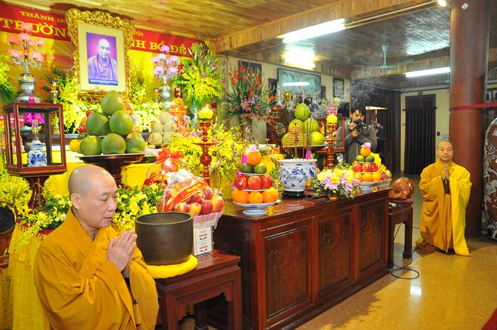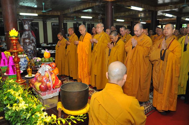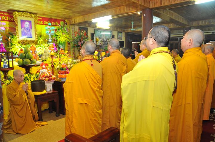Tại đây, chư Tôn đức đã thực hiện nghi thức cúng Phật, cúng Tổ, tụng kinh nhằm tri ân, báo ân, thành kính tưởng nhớ bậc tiền bối, người có công dành cả đời phụng sự cống hiến cho Phật giáo Việt Nam.