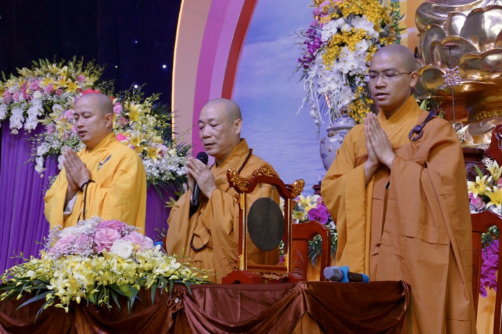 Mở đầu buổi lễ là diễn văn khai mạc của Hòa thượng Thích Bảo Nghiêm - trưởng ban tổ chức. Hòa thượng nhấn mạnh “hôm nay ngày mùng 8 tháng 12 năm Kỷ Hợi, ngày Bồ tát Tất Đạt Đa thành đạo Vô thượng chính giác, ngày đầu năm mới 2020, chư Tăng chùa Bằng kết hợp với chư Tăng chùa Hoằng Pháp huyện Hóc Môn tp.HCM và đạo tràng Pháp hoa tổ chức đại lễ kỷ niệm để cùng nhau trầm tư, chiêm nghiệm về ý nghĩa đích thực này. Trước hết, đây là biểu trưng cho sự vượt qua chính mình. Trải qua biết bao tháng ngày dài khổ hạnh, công phu nhọc nhằn gạn lọc chân lý cạn sâu, hy sinh thân mạng để tìm mối đạo mới cảm nhận hết giá trị chói lọi của bậc Đại Giác. Đây là một sự khai sáng tuyệt vời cho nhân loại. Thứ hai, Ngài đã mở cánh cửa giải thoát cho tất cả chúng sinh, nêu cao nhân phẩm con người. Việc Ngài đã cởi bỏ áo gấm tột bậc cao sang để khoác lên mình y bá nạp, ôm bát khất thực là một sự hòa hợp lớn lao trong tinh thần bình đẳng, hòa ái. Chính điều đó đề cao giá trị nhân bản. Thứ ba, hiệu quả diệu dụng đích thực của vận hành giáo Pháp trong đời sống đã nêu cao trách nhiệm xã hội của Phật giáo qua những đóng góp xây dựng đất nước trong thời hội nhập. Tăng Ni Phật tử dấn thân hoạt động Phật sự luôn ý thức về cộng đồng với tinh thần trách nhiệm xã hội cao cả; hành động vì lợi ích người khác và lợi ích chung”.