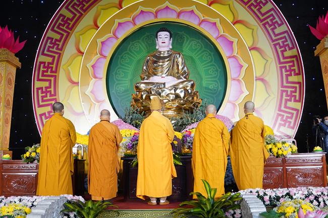 Cuối cùng, Hòa thượng chứng minh cùng chư tôn đức Tăng và Đạo tràng trang nghiêm thực hiện nghi thức dâng hương cúng dàng Tam Bảo, khép lại chương trình kỷ niệm Phật thành đạo và kỷ niệm 23 năm thành lập đạo tràng Pháp Hoa miền Bắc.