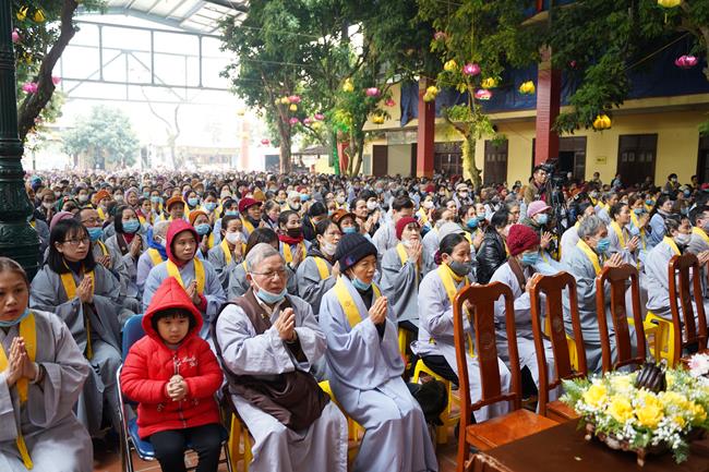 Tại buổi lễ, Đại đức Thích Thanh Tâm – Ủy viên Ban hoằng pháp TƯ, Giáo thọ sư chùa Bằng đã giảng giải về ý nghĩa của việc quy y Tam Bảo tới toàn thể đại chúng. Đại đức đã nói rõ ý nghĩa và lợi ích của việc thọ trì Tam quy – Ngũ giới. Tam quy giúp mỗi người có chỗ dựa tinh thần thù thắng, vững chắc, tránh bị đọa vào ba đường dữ: địa ngục, ngạ quỷ, súc sinh. Ngũ giới là phương pháp thiết thực và cụ thể giúp chúng ta ngăn ngừa những hành động sai trái nơi thân, khẩu, ý, từ đó mà đạt được sự an vui trong hiện đời và vị lai. Tam Bảo là điểm nương tựa khởi đầu, là nền tảng căn bản rất quan trọng mà tất cả Phật tử tại gia cần ý thức và thể hiện tốt đẹp trong cuộc sống.