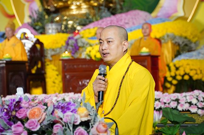 Sau đó, Phật tử Pháp Thiện Nội đã thay mặt cho Phật tử Đạo tràng Pháp Hoa miền Bắc báo cáo tổng kết một năm tu học của Đạo tràng Pháp Hoa toàn miền Bắc. Trong bài phát biểu, Phật tử Pháp Thiện Nội đã điểm lại vài nét hoạt động trong năm Canh Tý của Đạo tràng Pháp Hoa miền Bắc. Năm vừa qua, do dịch bệnh Covid 19 khiến cả thế giới rơi vào trạng thái bất ổn định, tuy nhiên Đạo tràng Pháp Hoa miền Bắc vẫn tổ chức được nhiều hoạt động Phật sự "tốt đẹp - hạnh đức - an vui và giải thoát". Đặc biệt là những chương trình từ thiện xã hội trong đại dịch, giúp đỡ khúc ruột miền Trung vượt qua khó khăn, xây dựng những căn nhà tình nghĩa, tặng quà động viên các hộ nghèo, thăm hỏi tri ân các đạo hữu cao tuổi của một số đạo tràng Hà Nội, xây dựng nhà dưỡng lão đầy đủ tiện nghi để chăm sóc sức khỏe cho người già cao tuổi...