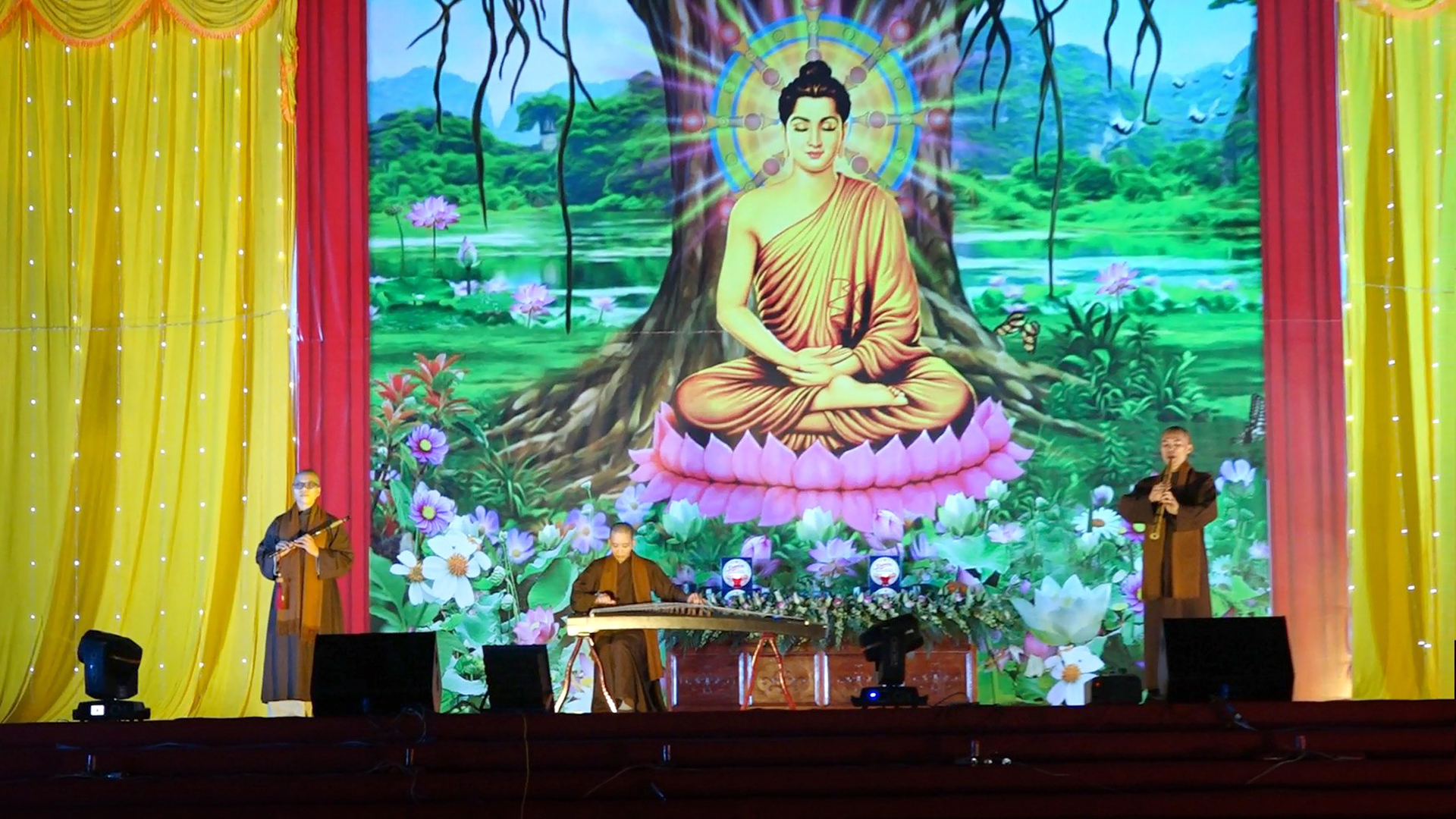 Trong chương trình kỷ niệm Đức Phật thành đạo có các tiết mục văn nghệ của chư Tăng Ni, Phật tử dâng lên cúng dàng Tam Bảo, cúng dàng Chư Tôn Đức; Nghi thức tâm linh dâng hương Kính mừng Đức Phật thành đạo cầu nguyện quốc thái dân an, cầu nguyện dịch bệnh tiêu tán, phong điều vũ lạc, thế giới hòa bình, chúng sinh an lạc; cầu nguyện Đại hội Đảng Cộng sản Việt Nam lần thứ 13 thành công tốt đẹp.