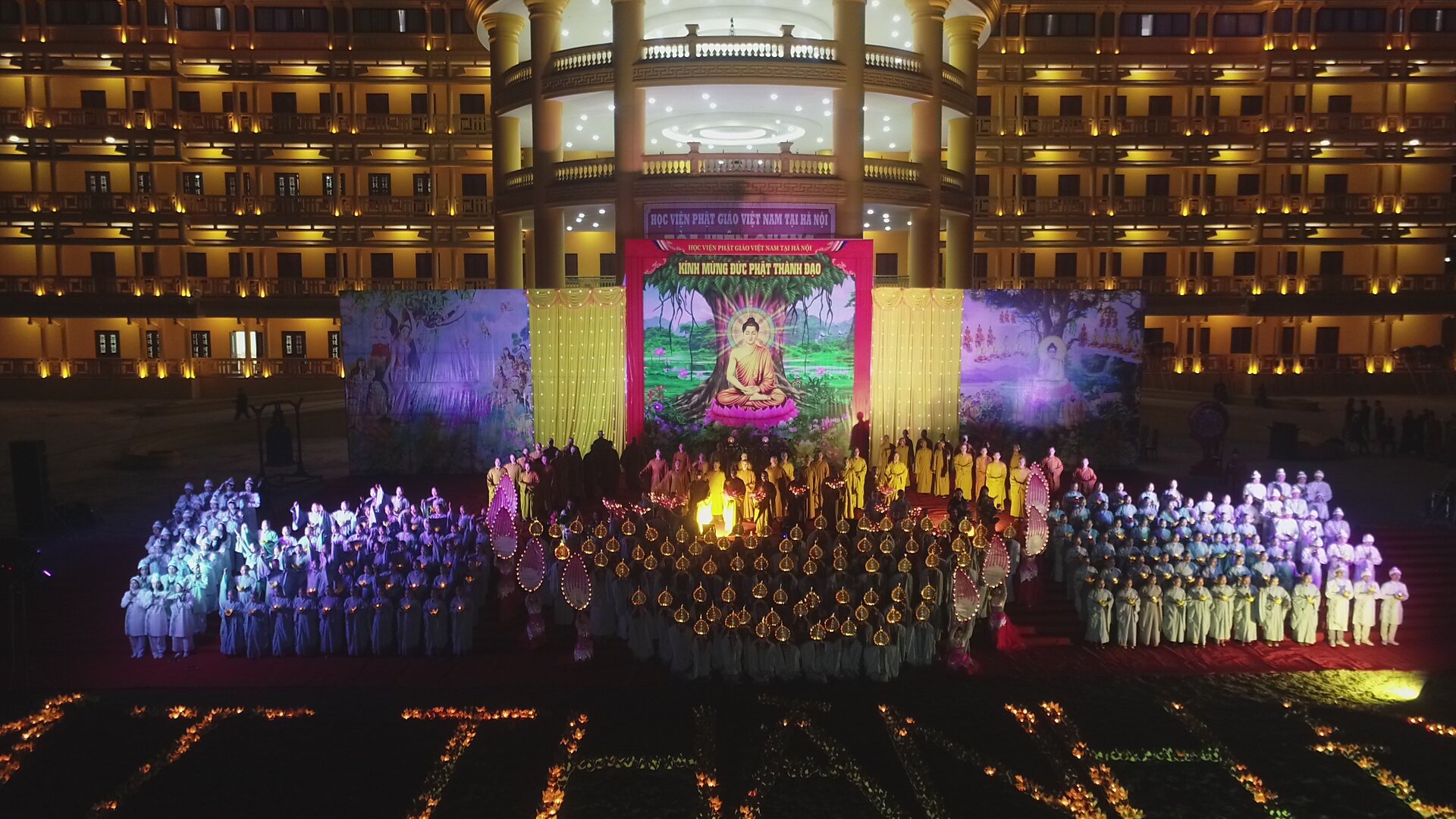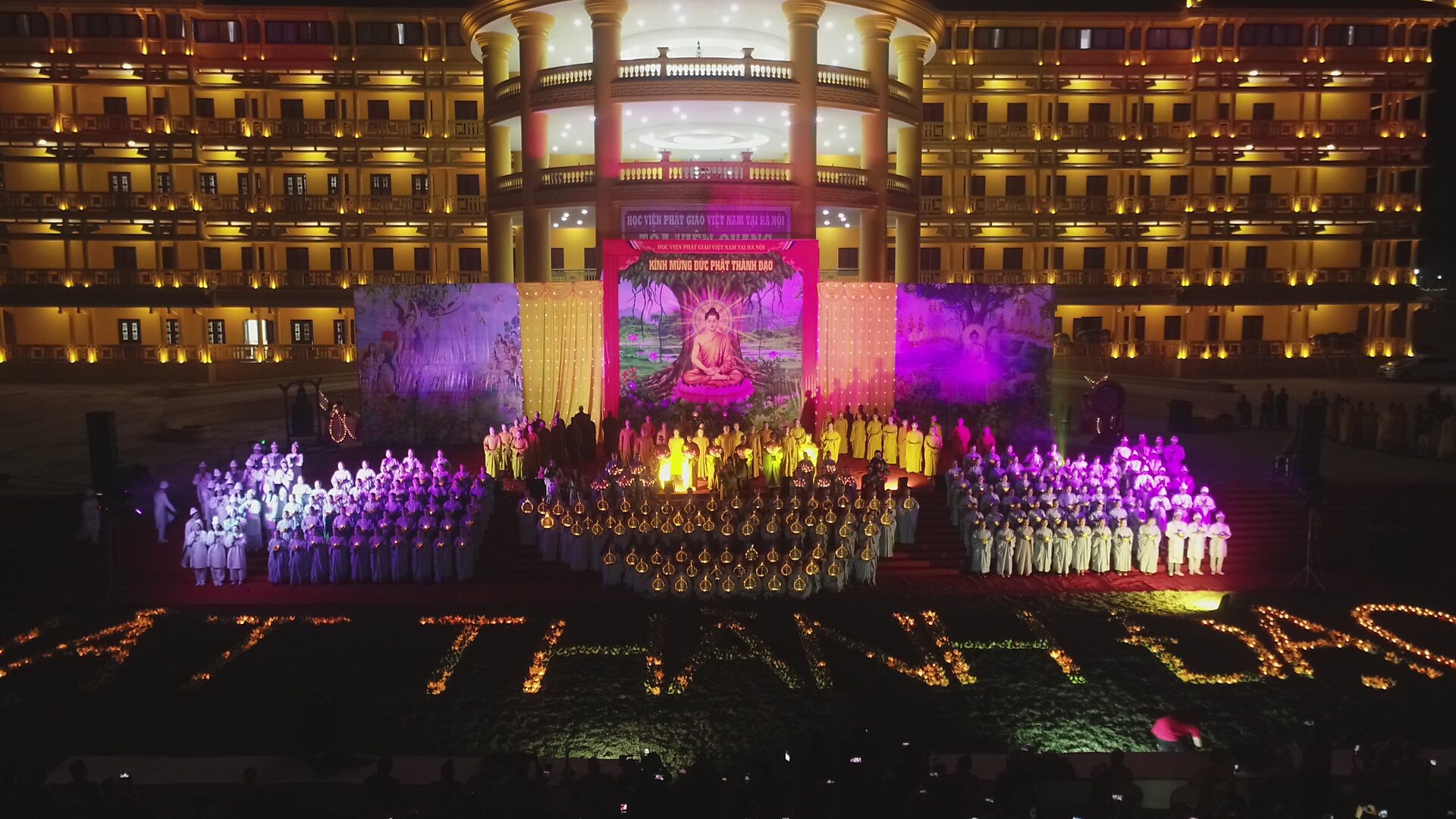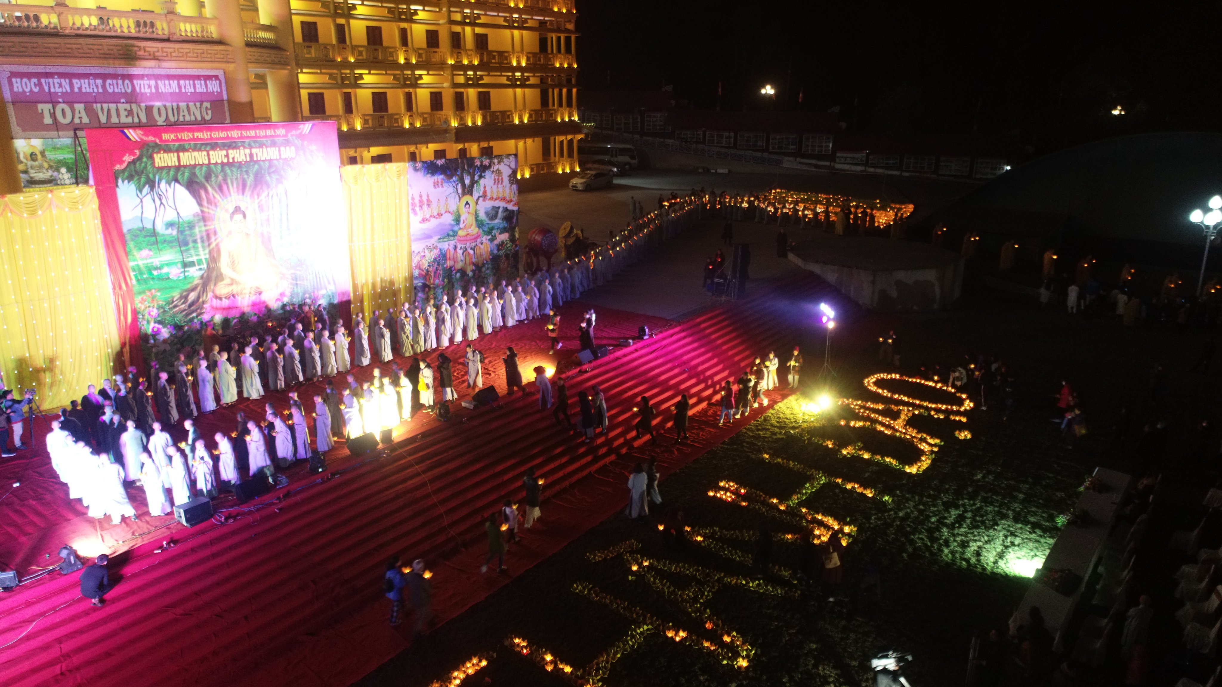 PSO - Tối ngày 20/01 (nhằm ngày 8 tháng Chạp năm Canh Tý), lễ kỷ niệm và đêm hoa đăng kính mừng Đức Phật thành đạo đã diễn ra trang nghiêm, thành kính trong khuôn viên Học viện Phật giáo Việt Nam tại Hà Nội.