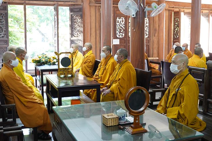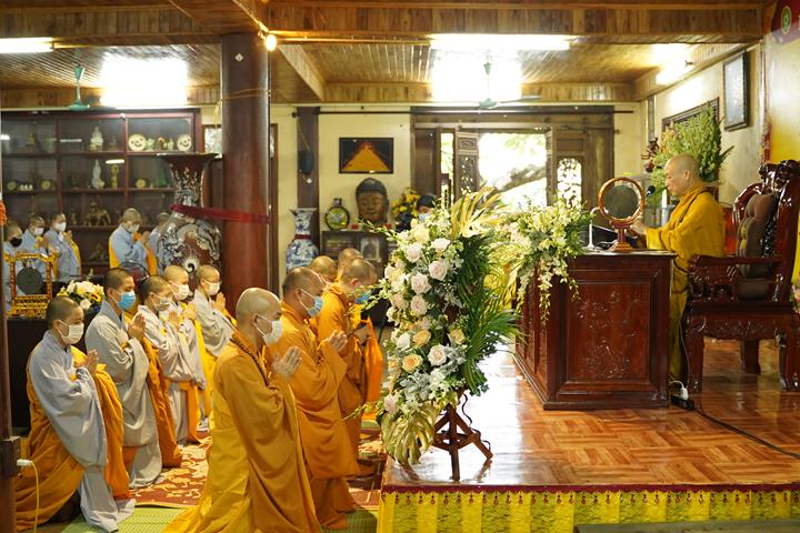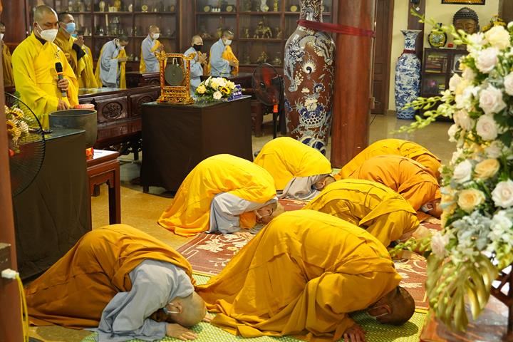 Tại đây, Hòa thượng Thủ tọa cùng đại chúng đối trước Pháp tòa vọng bái Đức đệ tam Pháp chủ, ngôi đường chủ của Trường hạ, cũng là chủ pháp để Tạ pháp Ngài.