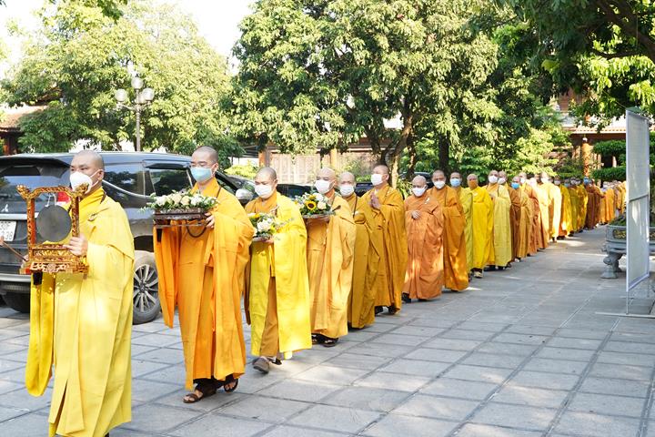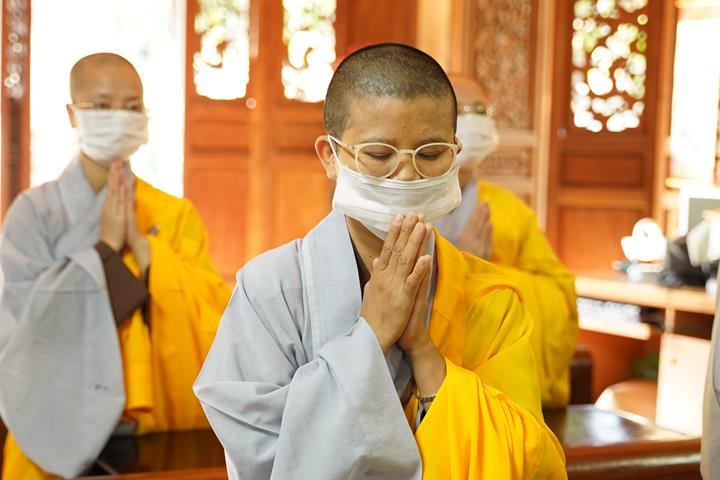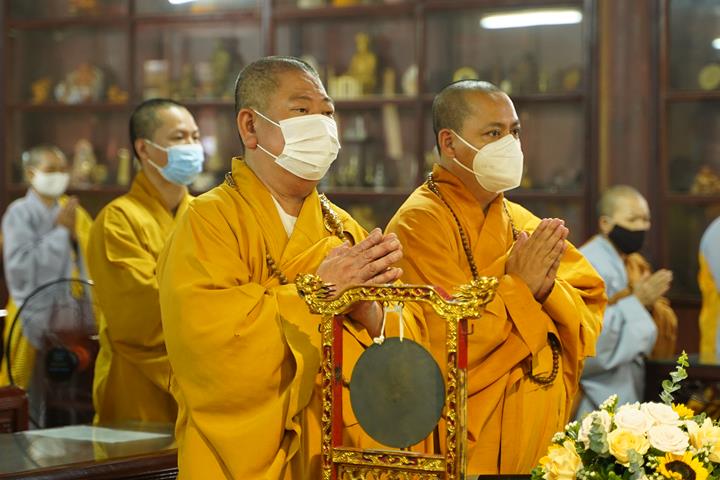 Đúng 6h30, chư Tôn đức trong ban kinh sư đã trang nghiêm làm lễ niêm hương bạch Phật, sám hối, trì chú Đại bi và bắt đầu nghi thức tạ pháp.