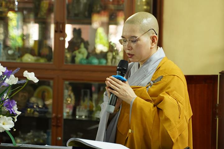 Sau đó, đại diện chư hành giả an cư tại trường hạ Bồ Đề dâng lời tác bạch Tạ pháp, cảm tạ lên chư Tôn đức ban giảng sư, kính chúc chư Tôn đức pháp thể khinh an, tuệ đăng thường chiếu. Nhân dịp này, đại diện chư hành giả hạ trường cũng tri ân những Phật tử đã hộ trì hạ trường viên mãn trong 3 tháng an cư.