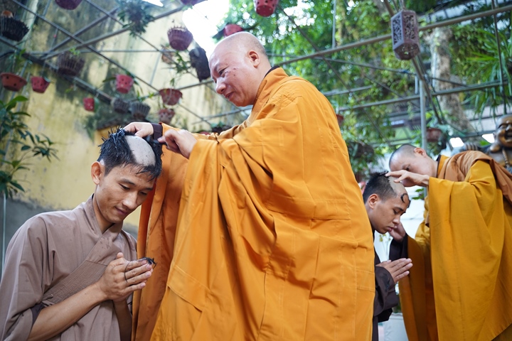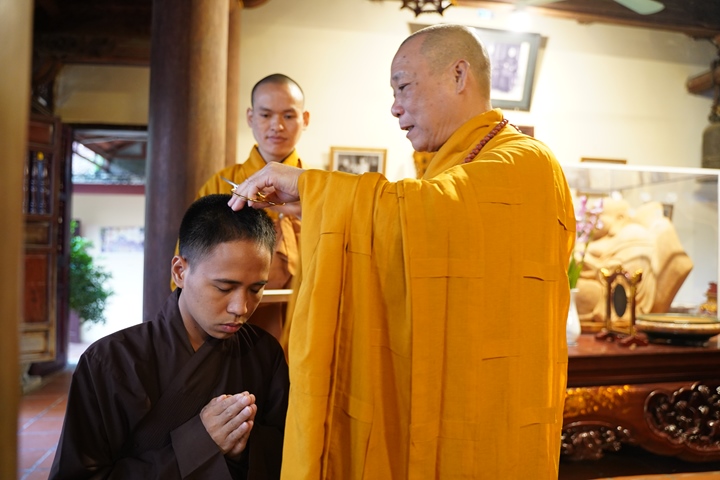 Hà Nội: Lễ thế phát xuất gia cho 2 thanh niên Phật tử tại chùa Bằng