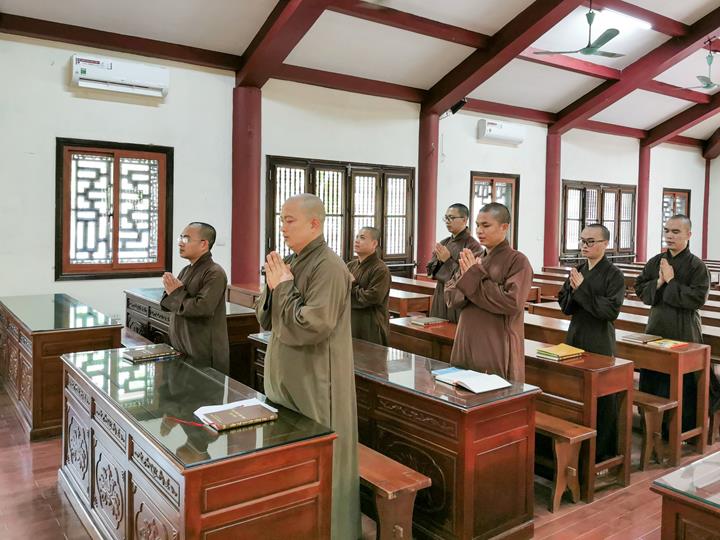 Đầu giờ chiều, đại chúng cùng vân tập để trao đổi kinh nghiệm tu học, thỉnh Hòa thượng dạy Nghi lễ căn bản, các đường tán tụng, thỉnh Phật thỉnh Tổ, chuông mõ hòa âm, nhịp nhàng cung kính.