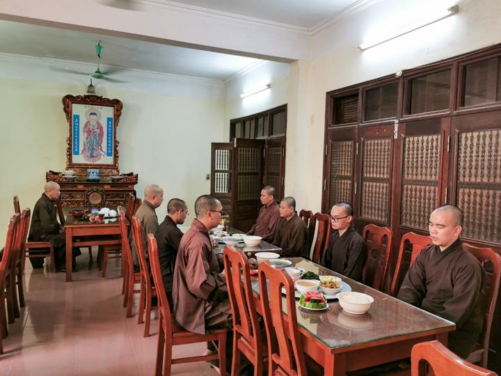 Sau giờ nghe Pháp, đại chúng chia nhau nấu cơm để đến 11h15 vân tập tại Trai đường cử hành Nghi thức Niệm thực.