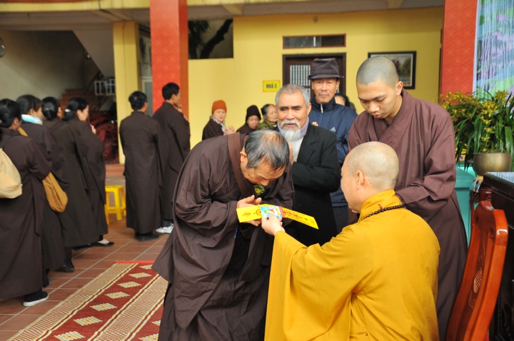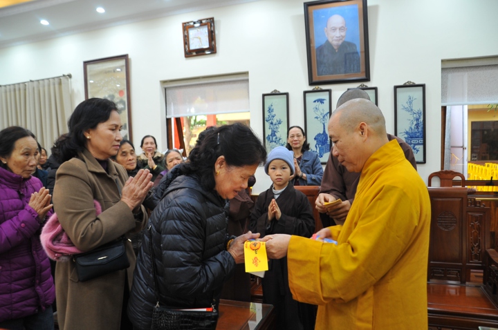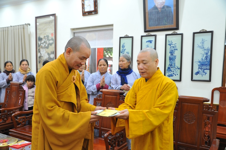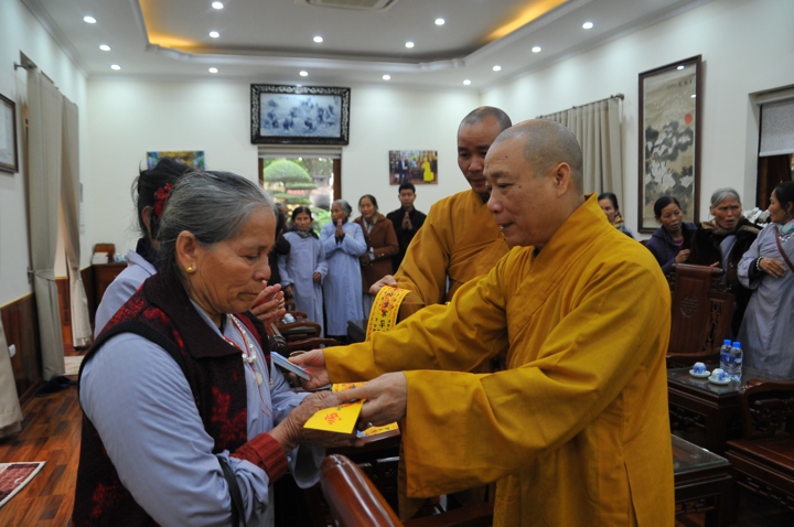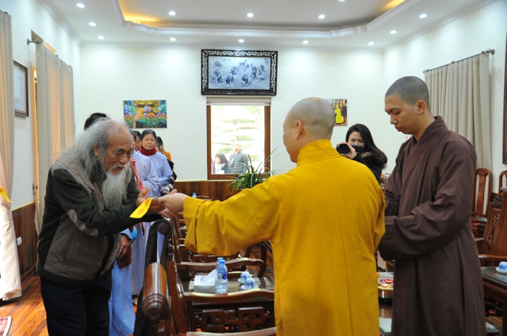 Trong ngày mùng 3 và mùng 4 Tết, đã có nhiều đạo tràng đến chúc Tết Hòa thượng nhân dịp đầu năm mới. Tại lễ đài chùa Bằng, trước tôn tượng Đức Phật Thích Ca uy nghi, hàng Phật tử đã được nghe những lời chỉ dạy tu tập của Hòa thượng trong năm mới, đồng thời cũng được đón nhận những Lời Phật dạy trong Kinh Pháp Cú và Kinh Phúc Đức – món quà lì xì đầy ý nghĩa của Hòa thượng trao tặng.