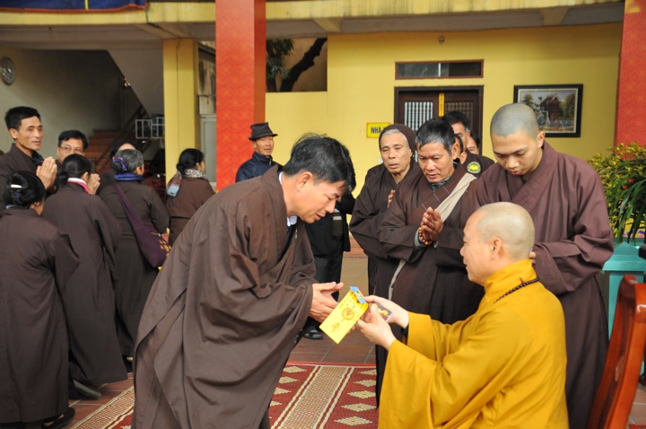Cũng trong ngày mùng 3 Tết thầy này, rất nhiều phái đoàn đã về lễ Phật, lễ Tổ và khánh tuế Hòa thượng nhân dịp đầu xuân mới như phái đoàn chùa Bà Đá, chùa Lý Triều Quốc Sư, chùa Hoa Nghiêm, chùa Bạch tượng, đoàn Phật tử Tịnh Độ Đạo Tràng, Phật tử đạo tràng Pháp Hoa chùa Bằng, chùa Linh Thông và chúng Phật tử Đồng Xuân. Hòa thượng khuyến tấn các Phật tử đừng chấp vào chuyện mỗi ngày phải đi lễ bao nhiêu chùa, mà hãy luôn giữ tâm thanh tịnh khi đi chùa, không vội vàng, trước nhất phải quy kính Tam Bảo, kính lễ Tổ sư, thăm thầy trụ trì, vãng cảnh để thấy được cảnh đẹp của ngôi chùa mà Tổ tiên ta đã tạo dựng và các vị sư hiện nay đang giữ gìn, bảo lưu và phát huy.