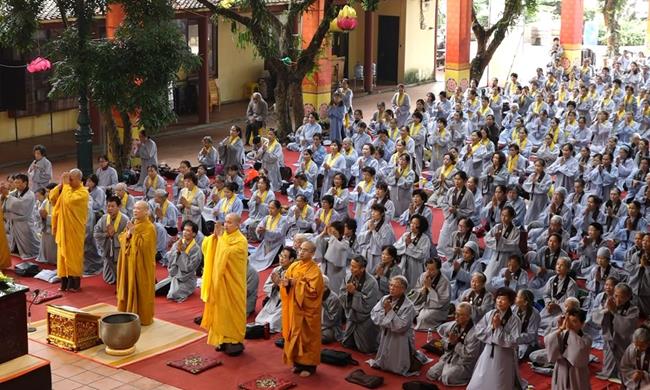 Sau khi lĩnh thọ giới Pháp, hướng về lễ Khánh đản Đức Quán Thế Âm 19/9, đại chúng đồng lễ ngũ bách danh (500 lạy), hồi hướng công đức tu tập cầu nguyện cho đất nước yên bình, đồng bào miền Trung đang chịu cảnh thiên tai bão lũ nhanh chóng vượt qua mọi khó khăn, ổn định cuộc sống.
