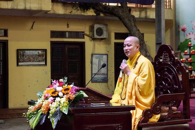Vào đầu giờ chiều, Đại đức Thích Thanh Tâm – Giáo thọ sư chùa Bằng đã thân lâm thuyết giảng cho đại chúng về đề tài "Khi cuộc đời có Phật".