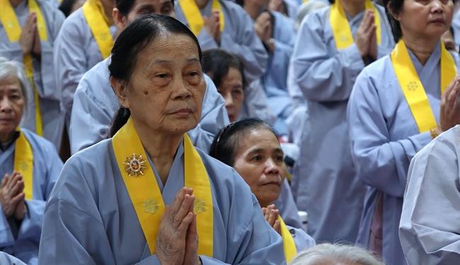 Đúng 7h30′ sáng, Hòa thượng trụ trì Thích Bảo Nghiêm đã làm lễ niêm hương bạch Phật và đăng đàn truyền giới cho các hành giả tu tập Bát Quan Trai giới trong ngày tu này.
