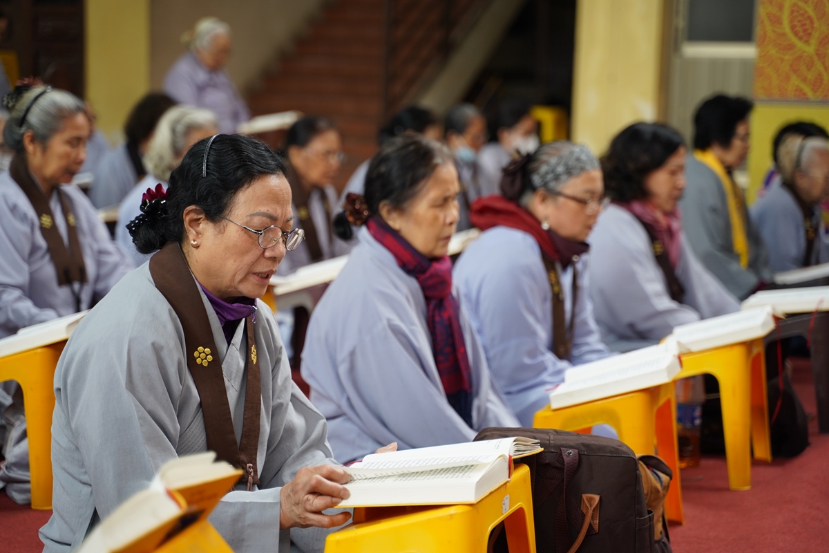 Sau thời pháp thoại ý nghĩa của Thượng tọa Giảng sư, các hành giả tiếp tục bước vào thời khóa trì tụng Kinh Phổ Môn cầu nguyện thế giới hòa bình, chúng sinh an lạc.