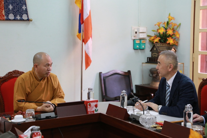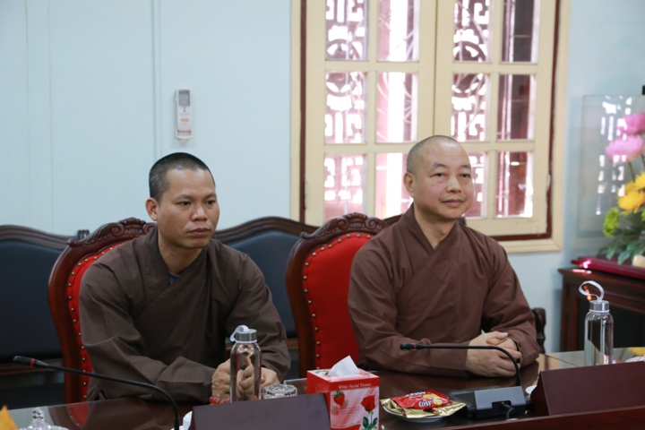 Tiếp phái đoàn có: Thượng tọa Thích Đức Thiện - Phó Chủ tịch kiêm Tổng Thư ký HĐTS, Trưởng ban Phật giáo Quốc tế TƯ; Thượng tọa Thích Thanh Huân - Ủy viên Thường trực HĐTS, Phó Văn phòng TƯ GHPGVN cùng chư Tôn đức Thường trực Văn phòng 1 TƯ GHPGVN.