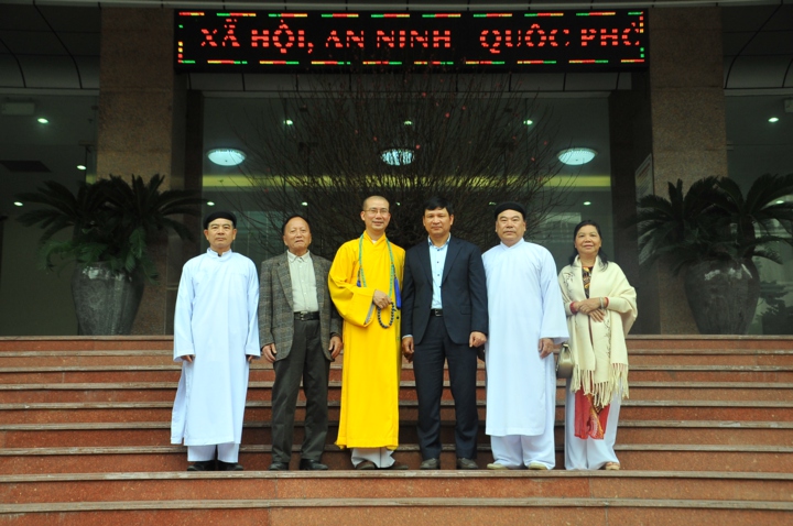 Phái đoàn gồm có Đại đức Thích Đạo Thông - Uỷ viên BTS GHPGVN Thành phố Hà Nội, Trưởng ban BTS GHPGVN quận Hai Bà Trưng; Giáo sư Thượng Mai Thanh - Trưởng Ban cai quản Thánh Thất Cao Đài Thủ đô Hà Nội; Ông Trần Mạnh Thành - Trưởng Ban Đoàn Kết Công Giáo quận Hai Bà Trưng.