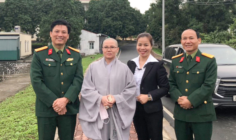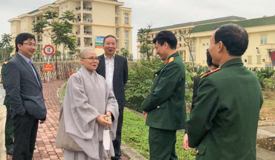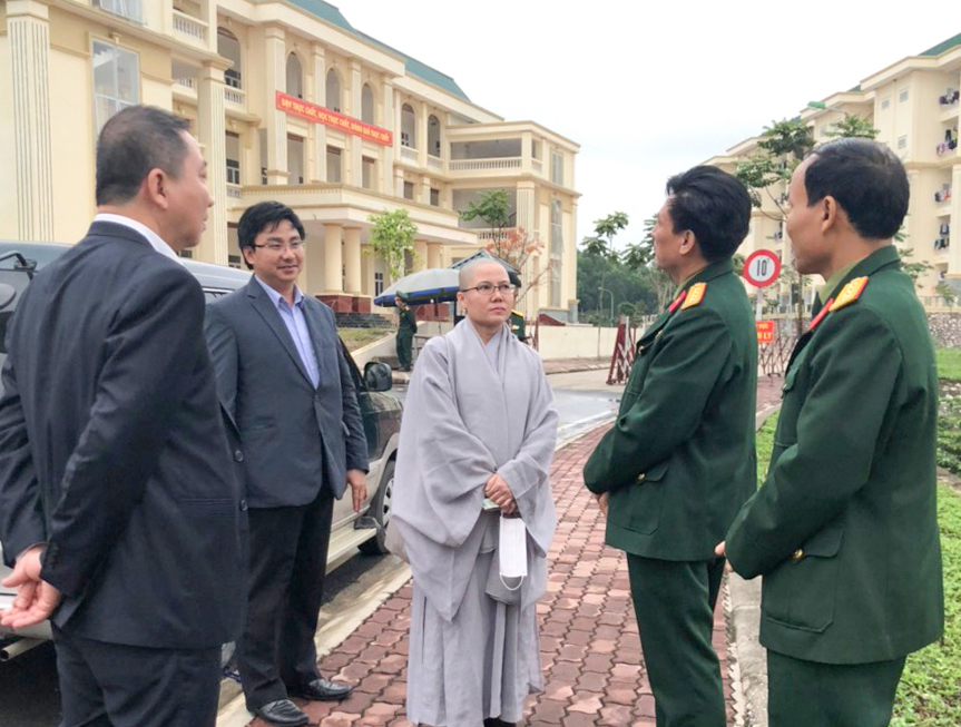 Trong sự trao đổi thân tình giữa phái đoàn và các vị lãnh đạo trung tâm cách ly, Sư cô Thích Nữ Giới Tánh chúc các cán bộ và chiến sỹ luôn mạnh khỏe và hoàn thành xuất sắc nhiệm vụ thiêng liêng mà Đảng, Nhà nước tin tưởng giao phó.