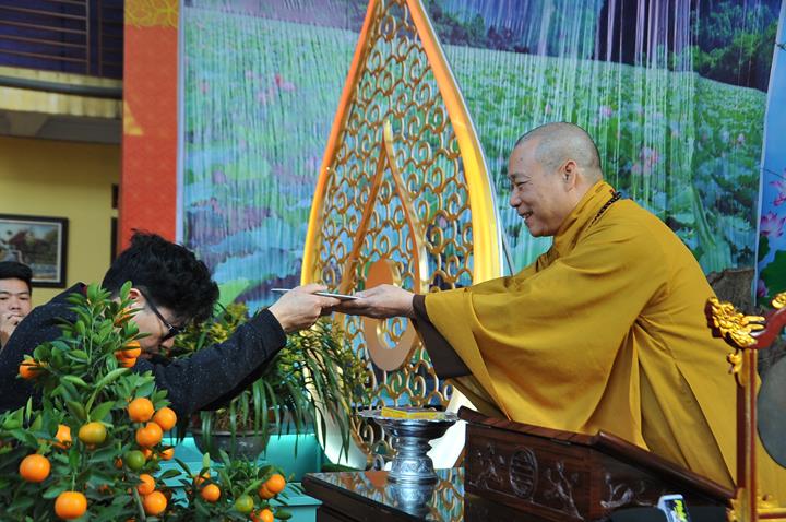 Nhân dịp đầu xuân năm mới, Hòa thượng cũng đã tặng cho mỗi Phật tử một câu Kinh Pháp Cú để hàng Phật tử lấy câu Kinh đó làm phương châm tu tập trong năm mới, giúp cuộc sống luôn được an lạc, thảnh thơi, hạnh phúc.