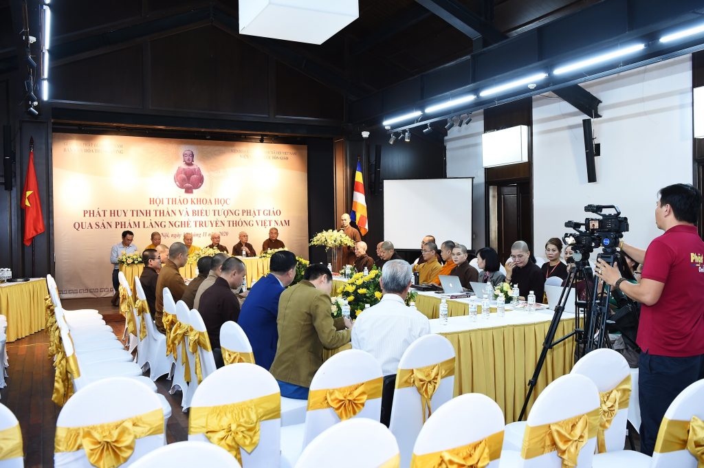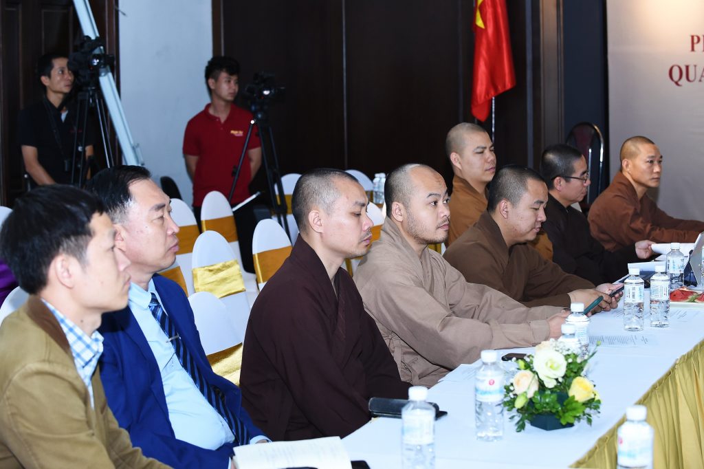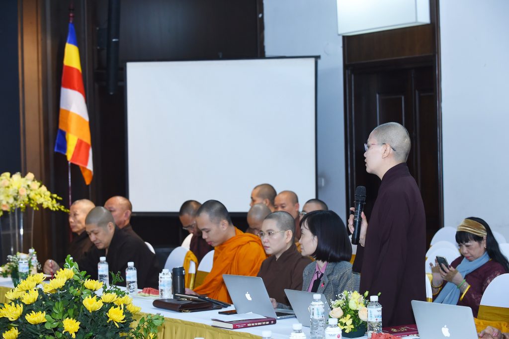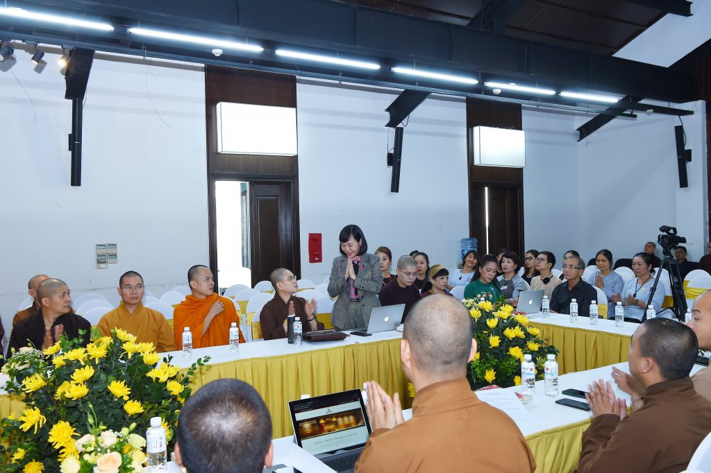 Tại đây, chư Tôn đức cùng các thành viên trong Ban Văn hóa đã thảo luận và thống nhất công tác chuẩn bị từ khách mời đại biểu, các bài tham luận trong hội thảo cho đến các khâu trang trí, trưng bày triển lãm, âm thanh, ánh sáng, truyền thông báo chí,…qua đó các thành viên cũng đã đóng góp ý kiến về các mặt hạn chế để kịp thời khắc phục, đảm bảo cho buổi Hội thảo ngày mai 10/11 diễn ra một cách thành công tốt đẹp nhất.