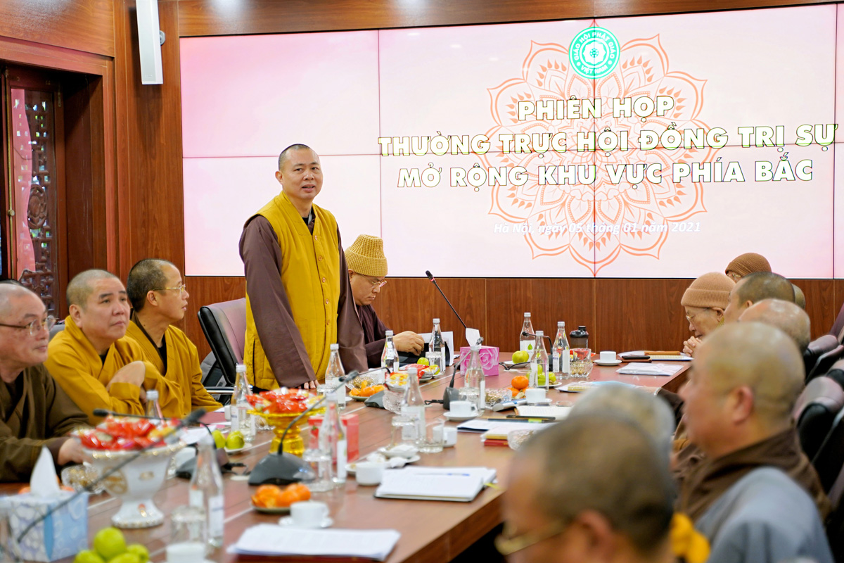 Phiên họp do HT.Thích Thanh Nhiễu - Phó chủ tịch Thường trực HĐTS GHPGVN chủ trì. Cùng tham dự còn có chư Tôn đức Phó chủ tịch HĐTS GHPGVN: HT. Thích Gia Quang, HT. Thích Bảo Nghiêm, HT. Thích Quảng Tùng, TT. Thích Thanh Quyết, TT. Thích Quảng Hà; TT. Thích Đức Thiện - Phó Chủ tịch kiêm Tổng thư ký HĐTS GHPGVN, Trưởng ban Phật giáo Quốc tế TƯ. HT. Thích Thanh Điện - Phó tổng Thư ký, Chánh Văn phòng 1 TƯ cùng với chư Tôn đức Tăng Ni ban Thường trực HĐTS, chư Tôn đức lãnh đạo BTS GHPGVN các tỉnh thành khu vực phía Bắc cùng về tham dự.