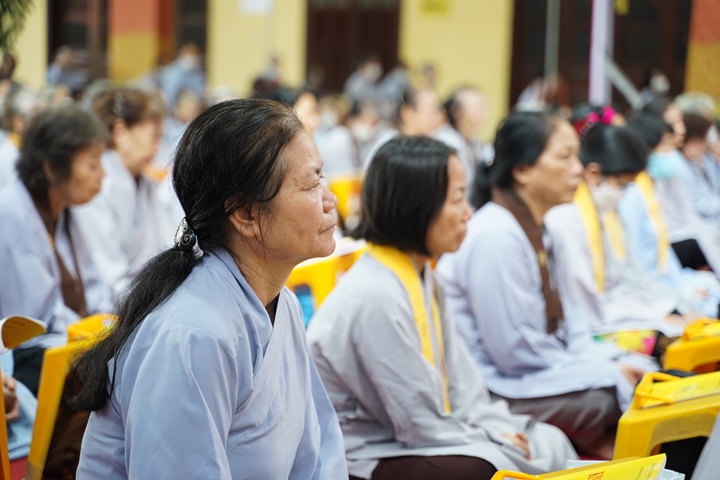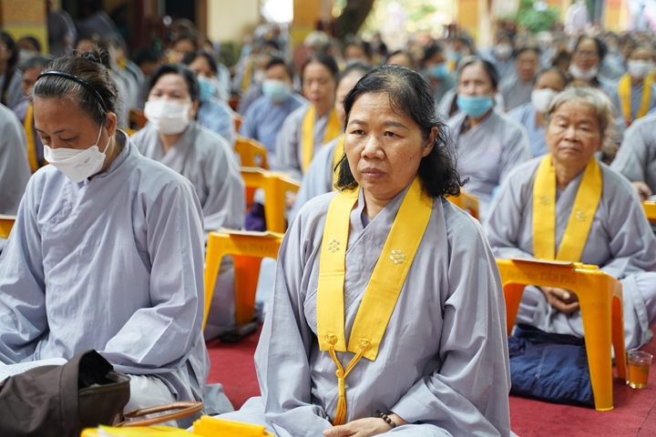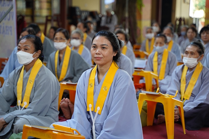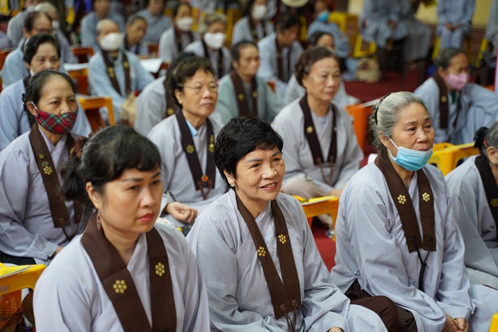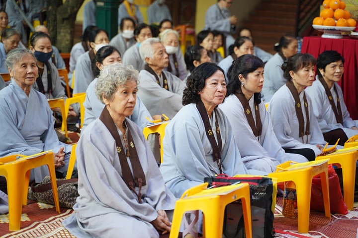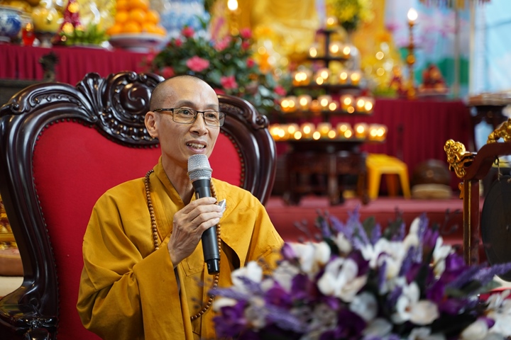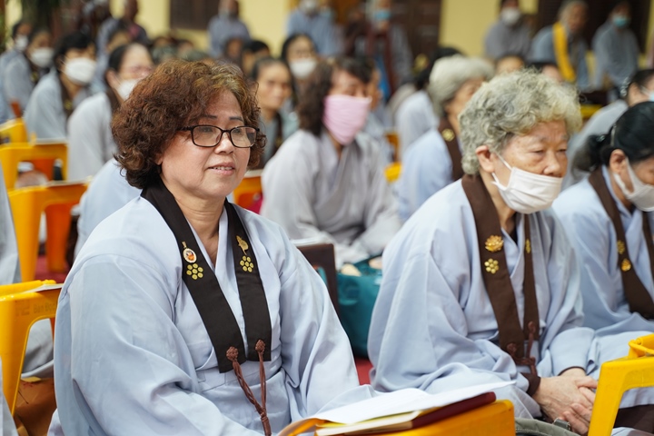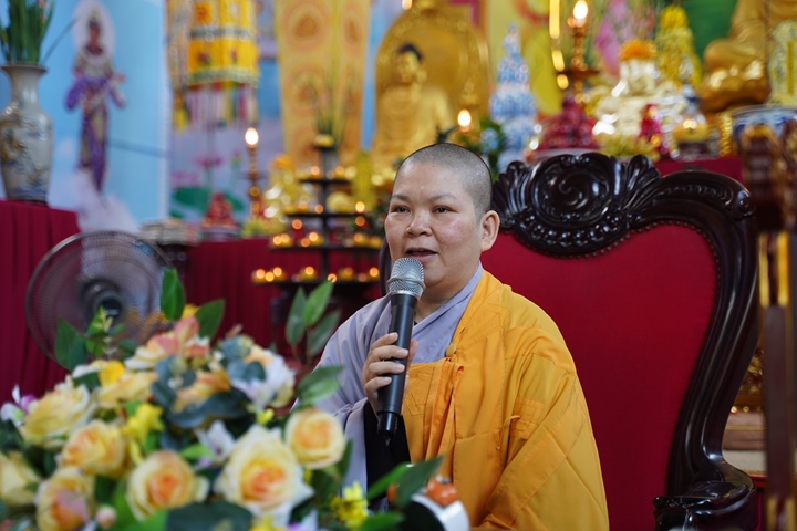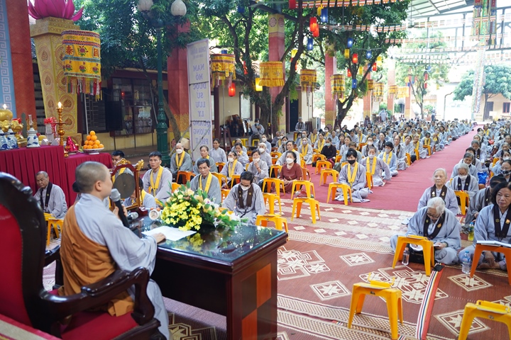 Qua đây, Thượng tọa giảng sư sách tấn hàng Phật tử "cần nhìn nhận rõ thân tứ đại là khổ, thân này là rừng cội, tâm này là nguồn ác, như thế mà quán sát được vô thường, vô ngã, dần dần xa lìa cái khổ của sinh lão bệnh tử. Tâm Phật chính là tâm giải thoát, không bám chấp. Biết tâm chúng sinh là khổ nên chúng ta phải biết thoát khổ, không được đắm chấp vào những thành bại được mất thường tình nơi thế gian, phải nhận thức được cuộc đời là vô thường, tựa như giấc chiêm bao. Các Phật tử cần nghe pháp bằng trí tuệ, tư duy về Pháp để sát chứng, sau đó áp dụng Pháp ngay hiện tại bằng trí tuệ. Người tu có trí tuệ nhìn chỗ nào cũng là Phật pháp. Bởi nhìn nhận rõ cái gì có tướng đều là vô thường không tồn tại mãi mãi, từ đó tâm sẽ luôn an định, trí tuệ sáng suốt, cuộc sống sẽ được an vui tự tại".