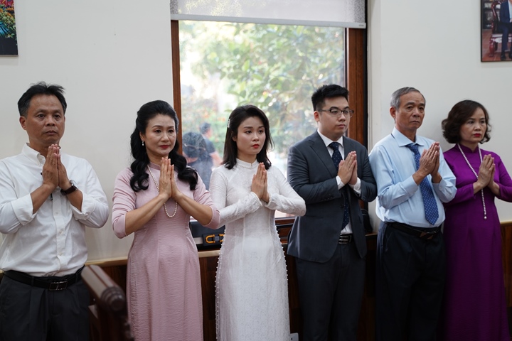 Cuối buổi lễ, Hòa thượng trụ trì và toàn thể đại chúng đã làm lễ cầu nguyện chúc phúc cho đôi trẻ “trăm năm tình viên mãn, bạc đầu nghĩa phu thê“.