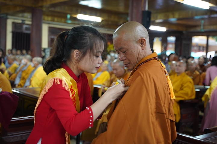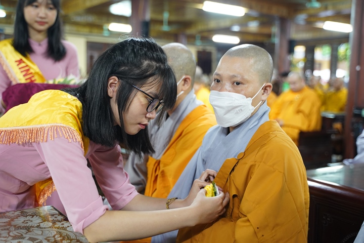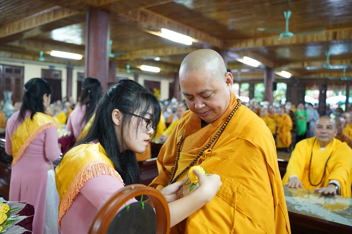 Tại buổi lễ, các bạn Thanh thiếu niên Phật tử Thiền viện Sùng Phúc đã dâng lời tác bạch khánh tuế kính mừng Hòa thượng Đường chủ hạ trường cùng chư Tôn đức chứng minh nhân ngày tự tứ. Sau đó kính dâng lên Chư tôn đức đóa hồng vàng giải thoát nhân mùa Vu lan hiếu hạnh, thể hiện tấm lòng tri ân của người con Phật với bậc Thầy mô phạm đã đưa những giáo lý Phật đà phổ cập nhân sinh, giúp hàng Phật tử tu tập chuyển hóa, xây dựng một đời sống an vui hạnh phúc.