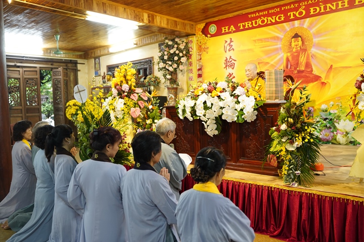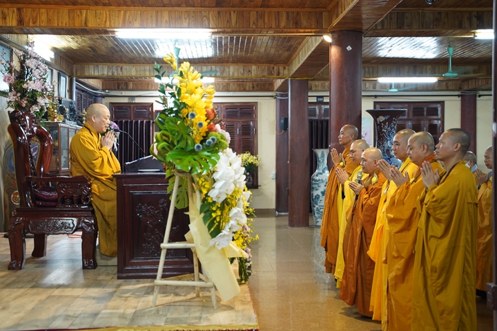 Hòa thượng cũng chúc mừng Tăng lạp của chư Tôn đức Tăng Ni hành giả an cư, đồng thời nguyện mong “đem công đức này hồi hướng về tất cả quý vị Phật tử đời này gia đình mạnh khỏe, phúc thọ tăng long, thành tựu trong mọi công việc của cuộc sống. Xin đem công đức này hồi hướng cho Tổ tiên của tất cả chúng ta được siêu sinh an lạc quốc”.