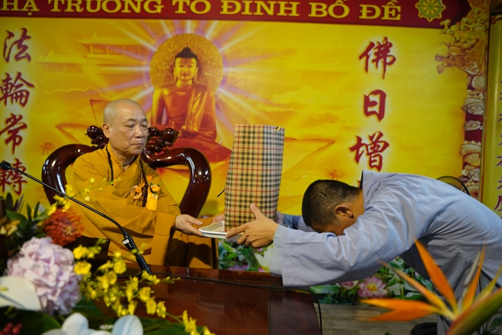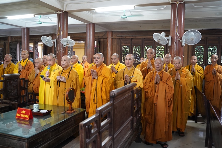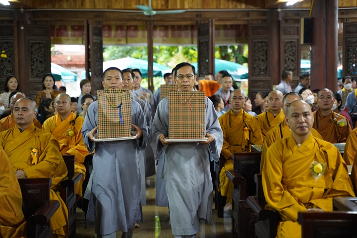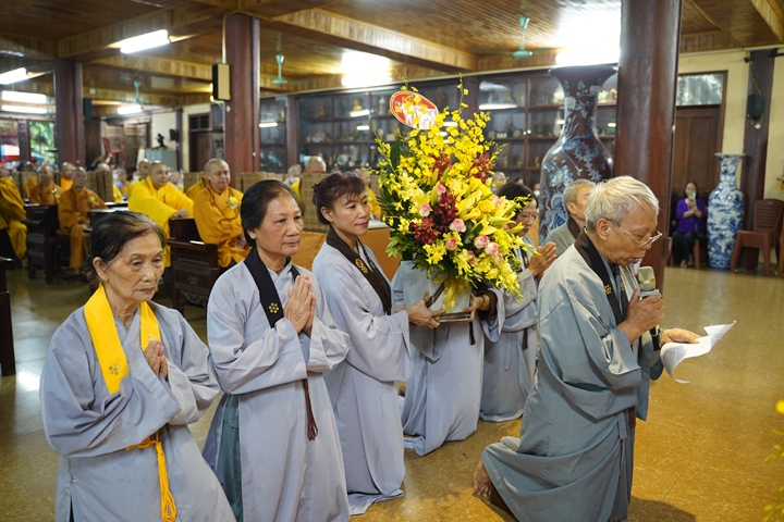 Buổi lễ được đặt dưới sự chủ trì của HT.Thích Bảo Nghiêm - Phó Chủ tịch HĐTS, Trưởng ban Hoằng pháp TƯ GHPGVN - đương vi ngôi Đường chủ hạ trường cùng chư tôn đức Thượng tọa, Đại đức, Ni trưởng, Ni sư trong Hạ trường, đại diện quý đạo hữu Phật tử các đạo tràng về cúng dường Chư tôn đức.