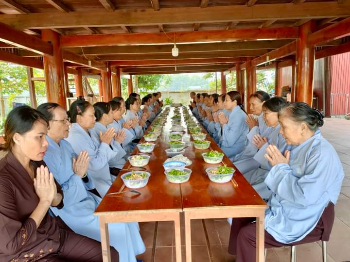 Sau thời pháp thoại, đại chúng cùng bước vào thời khóa niệm Phật và dùng bữa trưa tại trai đường chùa. Ngày tu khép lại trong niềm hoan hỷ của đại chúng.