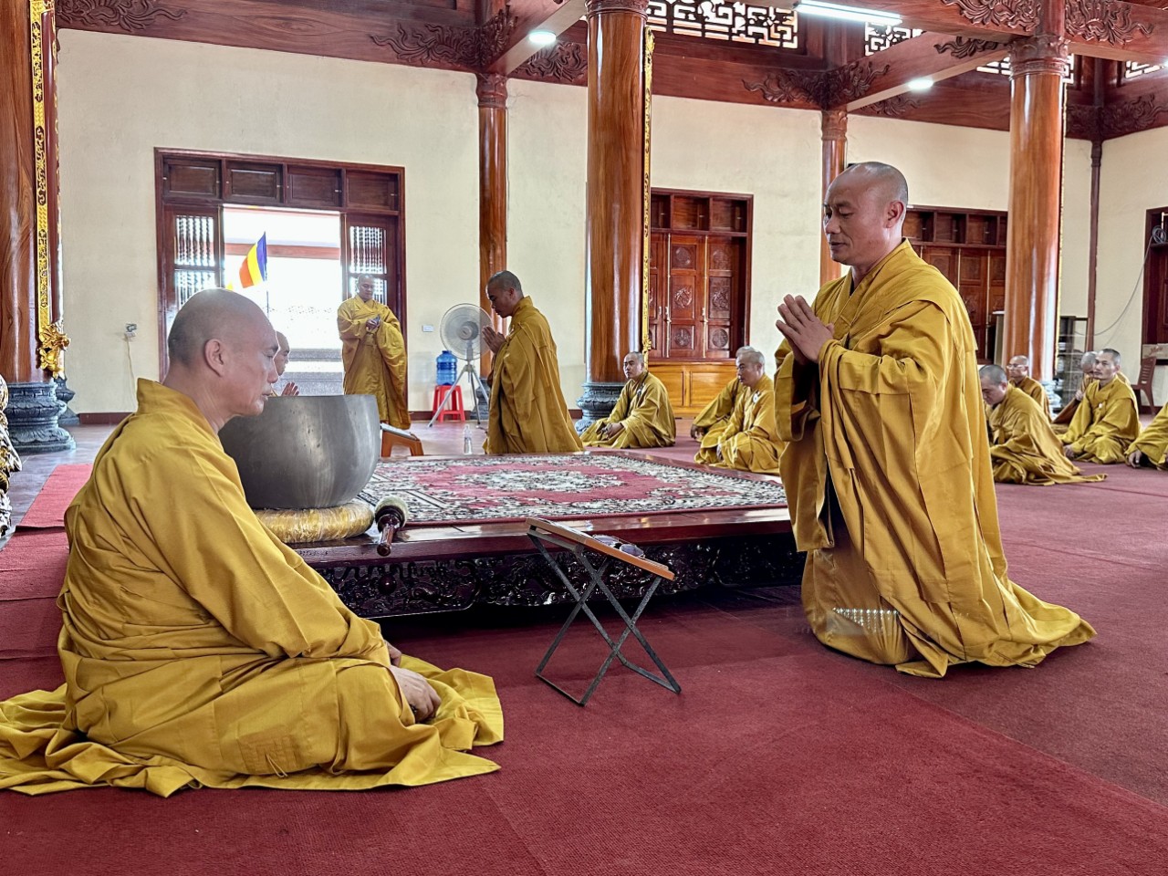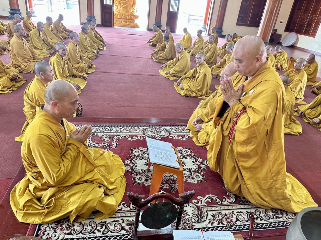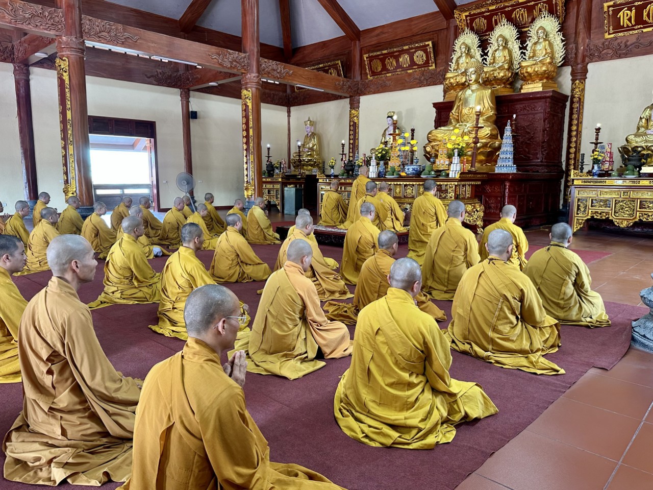 Sau khi đảnh lễ Tổ sư, chư Tôn đức đã quang lâm Đại hùng bảo điện, niêm hương bạch Phật, đảnh lễ Tam bảo. Đại chúng cung thỉnh thượng toạ Thích Hạnh Nhẫn, Thượng toạ Thích Chánh Thành đối thú tác pháp An cư, sau đó chư Tăng lần lượt theo thứ tự hạ lạp tác pháp thọ An cư.