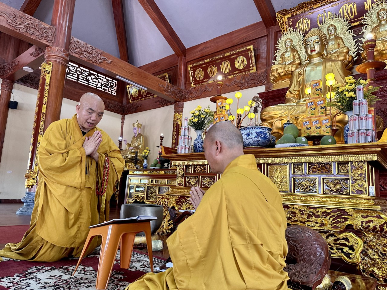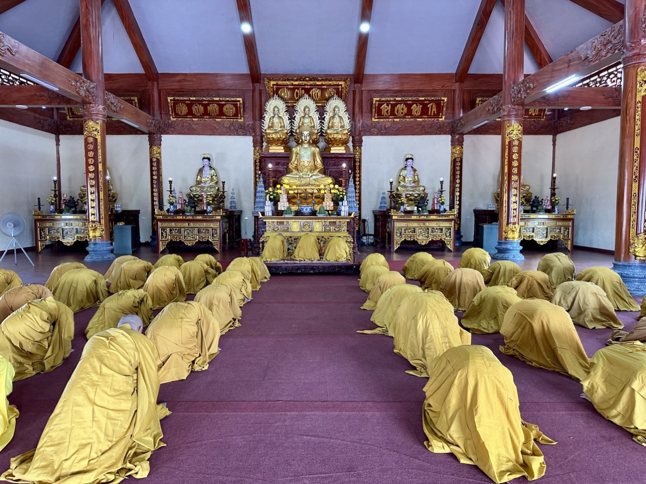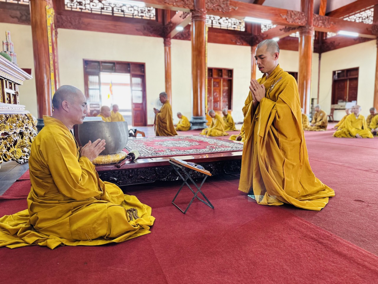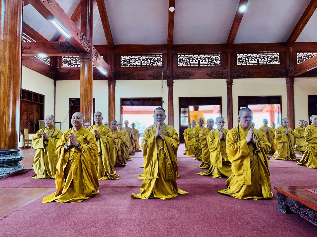 Sau khi đảnh lễ Tổ sư, chư Tôn đức đã quang lâm Đại hùng bảo điện, niêm hương bạch Phật, đảnh lễ Tam bảo. Đại chúng cung thỉnh thượng toạ Thích Hạnh Nhẫn, Thượng toạ Thích Chánh Thành đối thú tác pháp An cư, sau đó chư Tăng lần lượt theo thứ tự hạ lạp tác pháp thọ An cư.